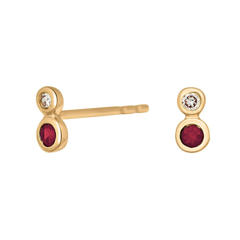14kt. guldørestikker m/rubin og dia 0.03ct W/SI