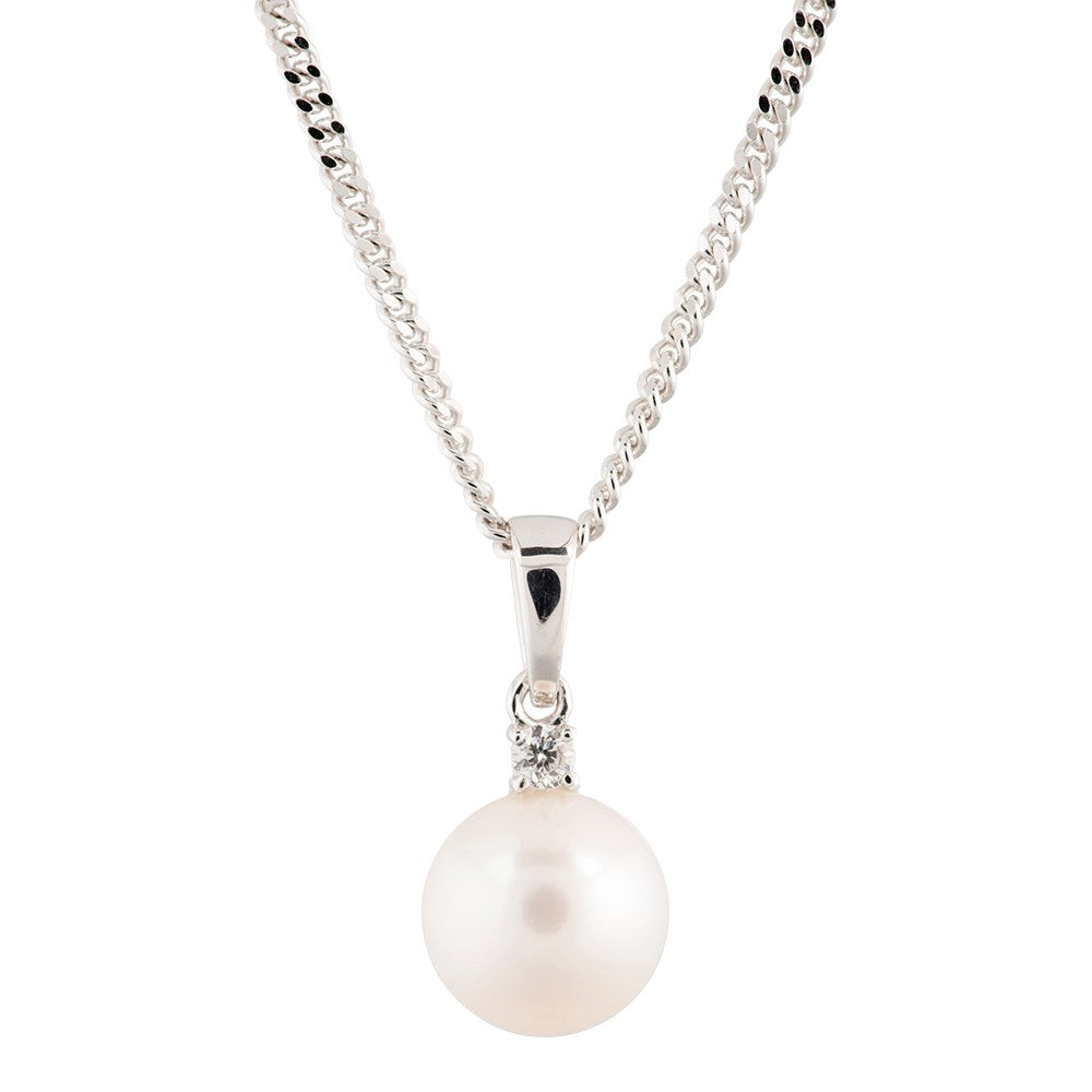 14kt. hvidgulds vedhæng m. fvkp og 0,035 ct TW/SI