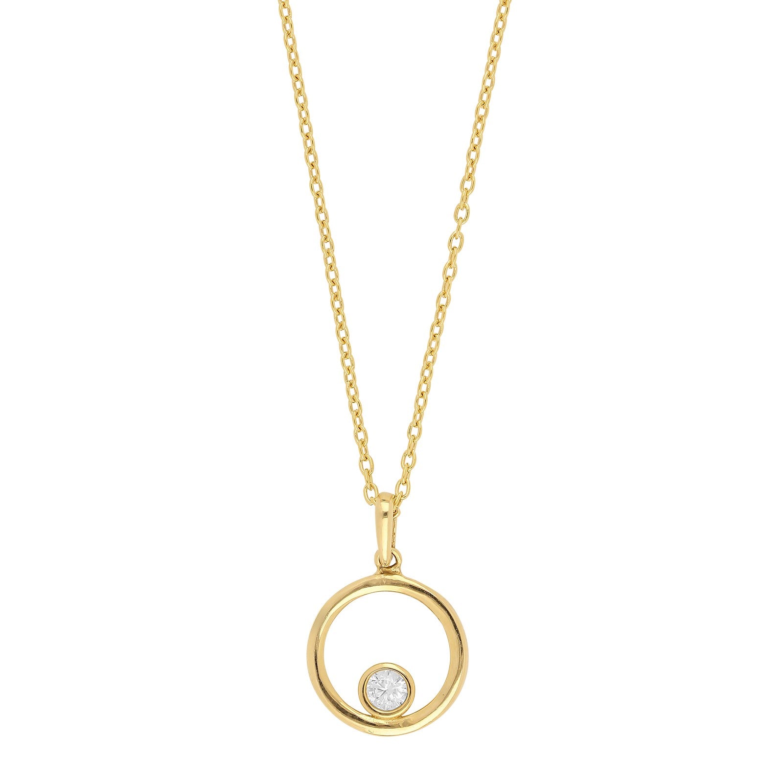 8kt. guldvedhæng cirkel m/cz inkl. forg. sølvkæde