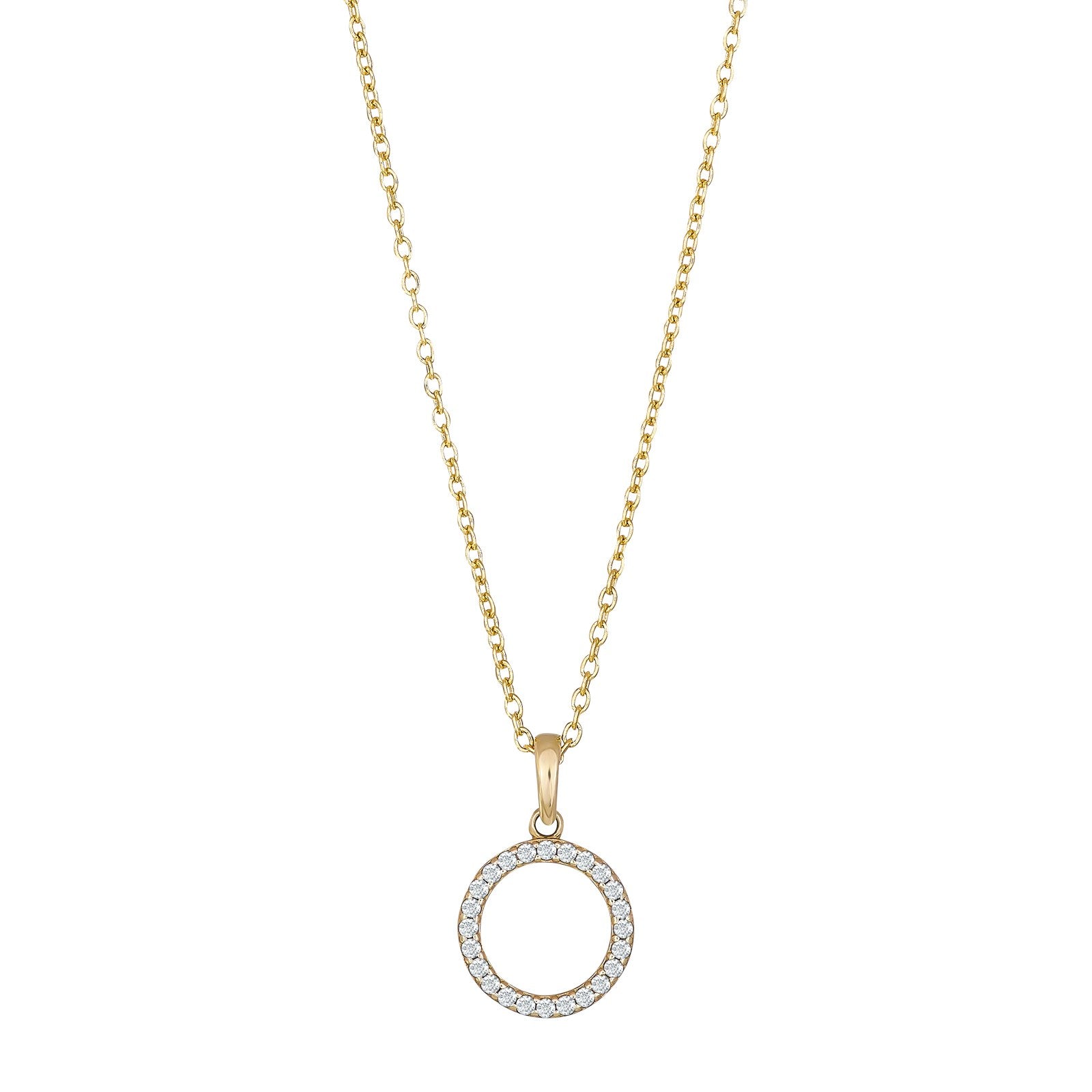 8kt. guldvedhæng cirkel m/cz inkl. forg. sølvkæde