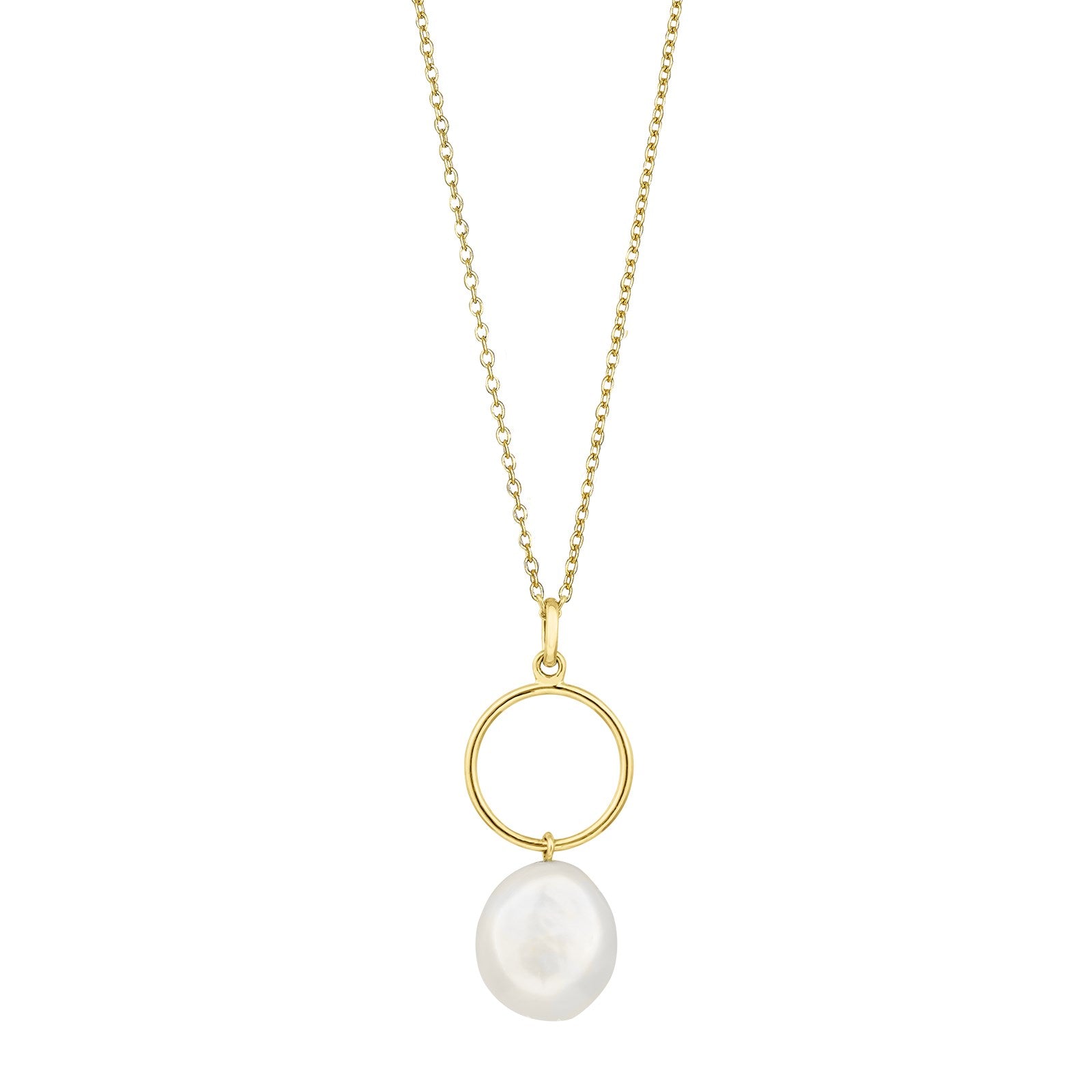 8kt. guldvedhæng cirkel og perle inkl. forg. kæde