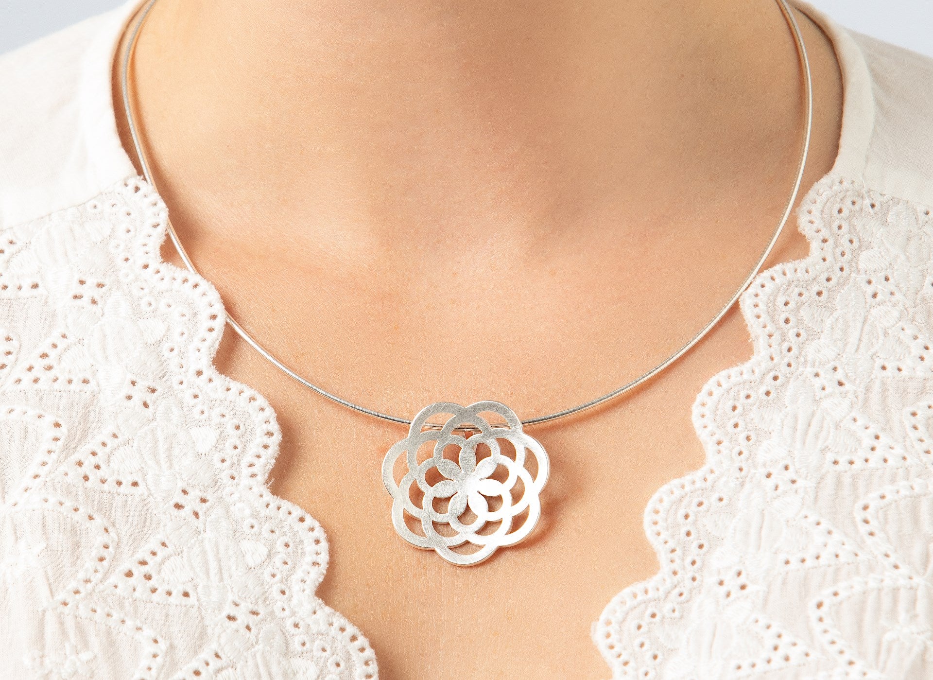 Sensuelt blomstersmykkedesign fra den nye "Lotus Collection" af bastian inverun. Mattet 925/- sterling sølv danner et statement-vedhæng med en stærk karakter, hvis design er baseret på strukturen af en lotusblomst. Dette smykke er designet af designeren Nadine Resch med stor sans for detaljer. Fås i et sæt med matchende ørestikker og matchende ring.
