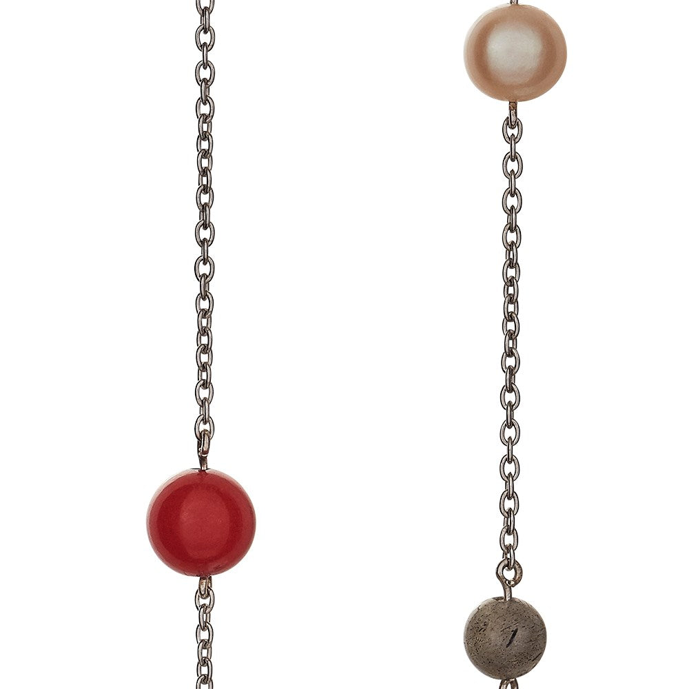 Sølv rhod. system-kæde rød/orange/grøn mix Sten