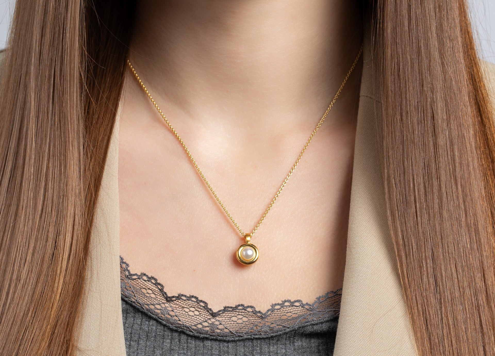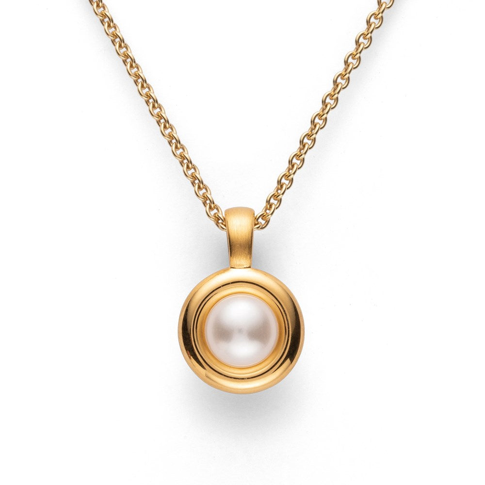 Dette elegante, forgyldte vedhæng lavet af mat og poleret 925/- sterling sølv udtrykker perfekt den hvide kulturperle (1,46 ct) som et symbol på tidløs skønhed. Et enkelt og samtidig elegant smykkedesign af designeren Nadine Resch. Fås også i kombination med de matchende ørestikker, den matchende ring og det matchende armbånd.