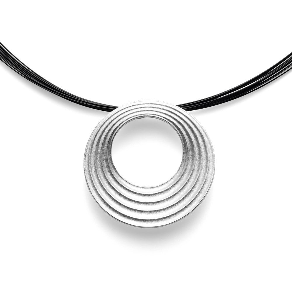 Et tidløst og på samme tid sensuelt formet smykkedesign gør dette sandmatte vedhæng, lavet med det fineste håndværk, til et elegant smykkeudsagn. Smykkeskiven lavet af 925/- sterling sølv imponerer med et unikt overfladedesign i et attraktivt ringlook. Den skjulte ophæng sikrer det særligt elegante udseende af denne attraktive halskæde. Perfekt tilgængelig i kombination med de matchende ørestikker.