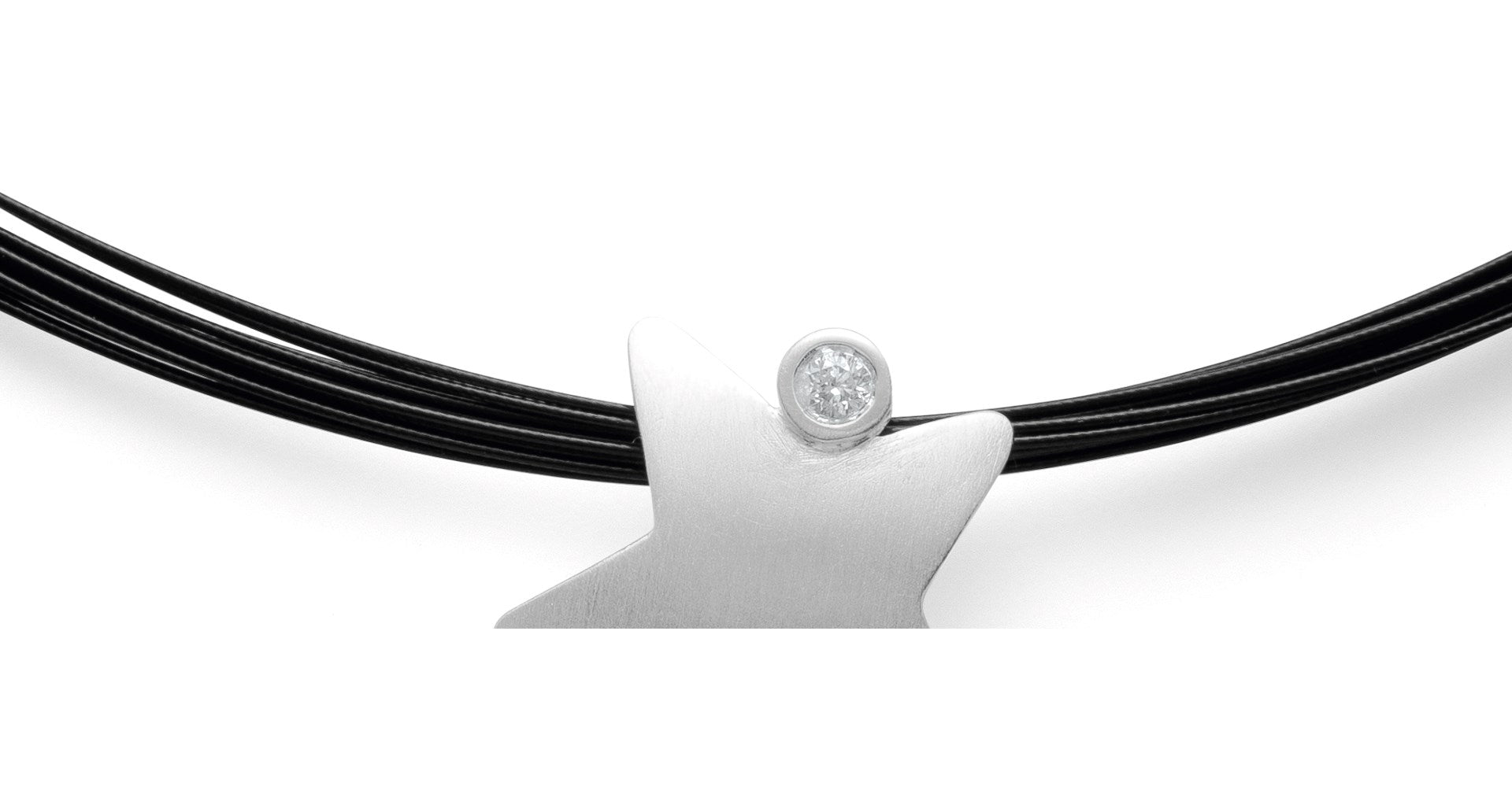 En omhyggeligt udformet choker lavet af 15 fine, sorte rustfri stålstrenge, som er harmonisk bragt sammen i en dobbelt clips lukning. Lukketypen giver mulighed for særlig nem åbning og lukning. Fås også i andre versioner.