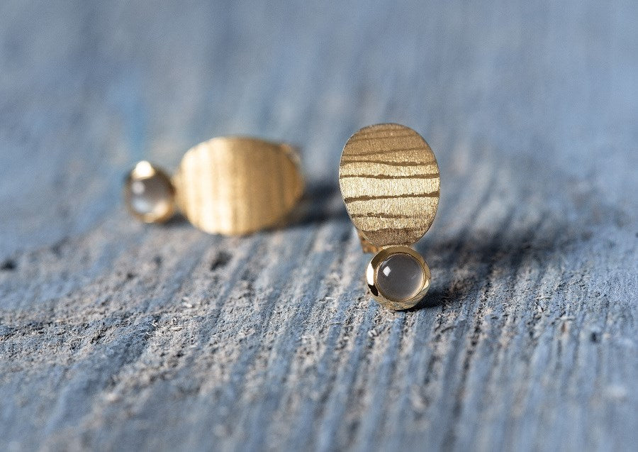 750/- earstud satin/brushed, grey moonstone 0,30ct