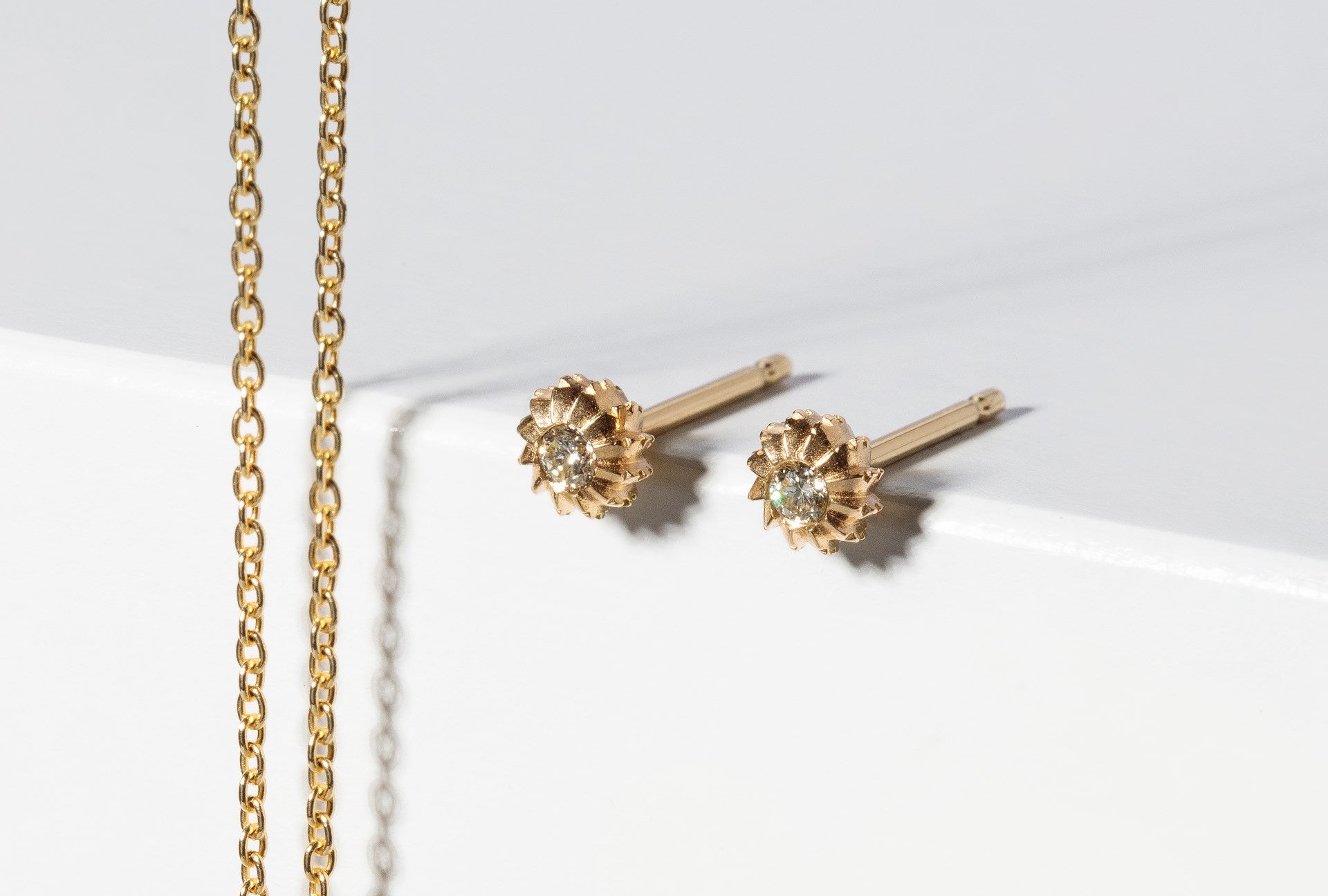 750/- earstud satin/brushed, rhodolite 0,02ct
