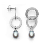 925/- earstud, rho. satin/brushed, pearls 3,32ct