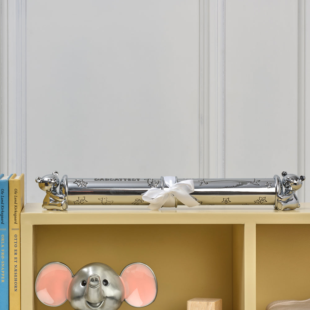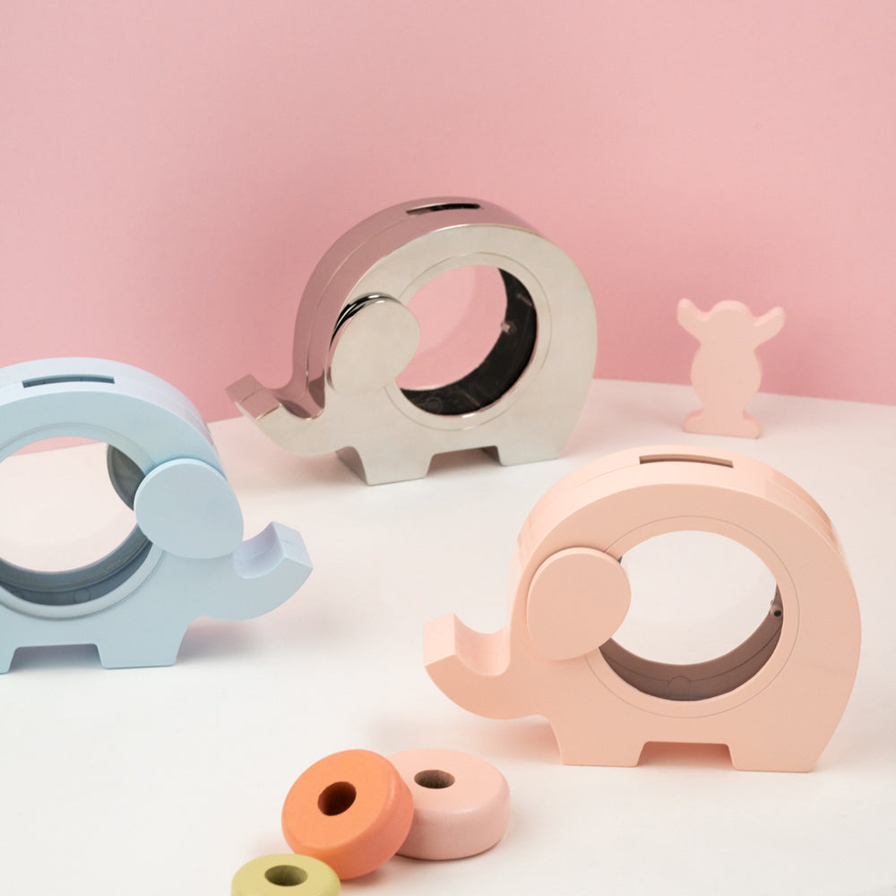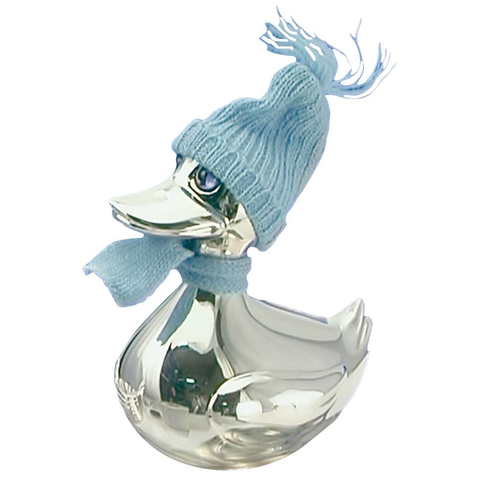 Money Bank-duck w. pink/blue cloth - Chromeplated