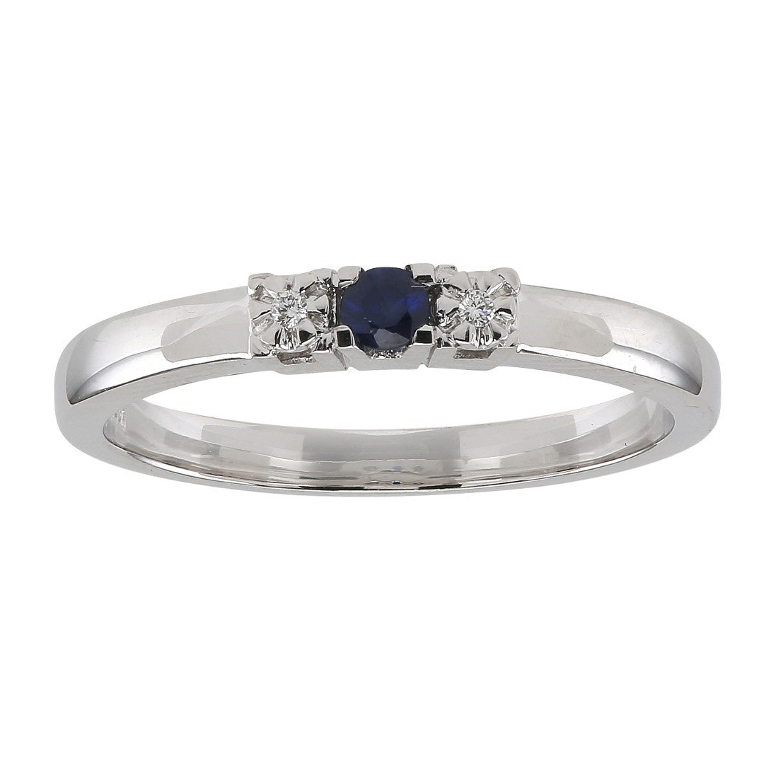 14 carat whitegoldring dia. 0,10caratTW/SI + sapp.