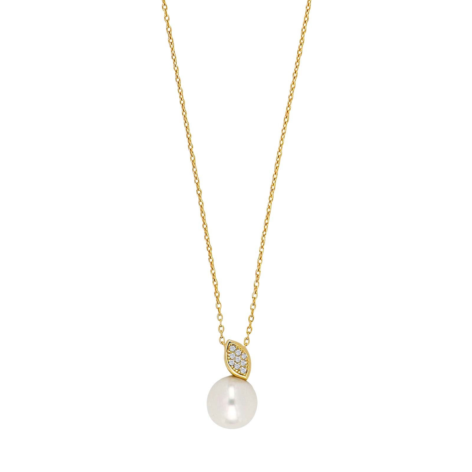 14ct. gold pendant w/dia. 0.045ct W/SI + pearl
