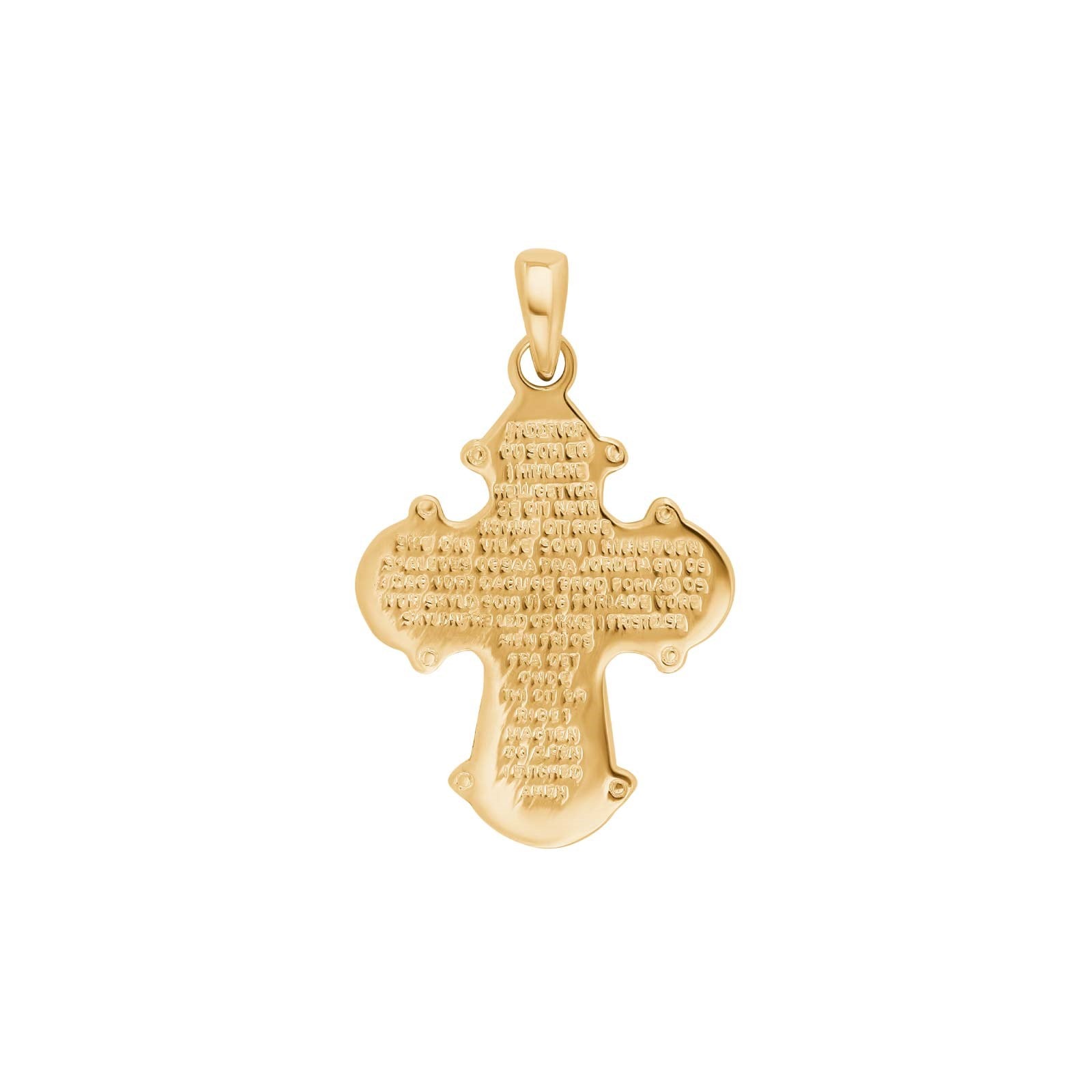 Stylistic Dagmar Cross in 8 ct. Gold. On the front is a depiction of Jesus on the cross. On the backside is the Danish version of The Lord’s Prayer.