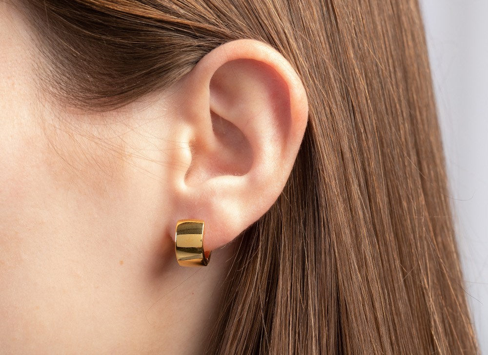 This puristic classic made of gold-plated and polished 925 sterling silver should not be missing in any jewelry box. The hinge built into the attractive basic creole ensures a high level of comfort and easy opening and closing of the modern, slightly angular earrings. Also available in other versions (e.g. without gold plating).