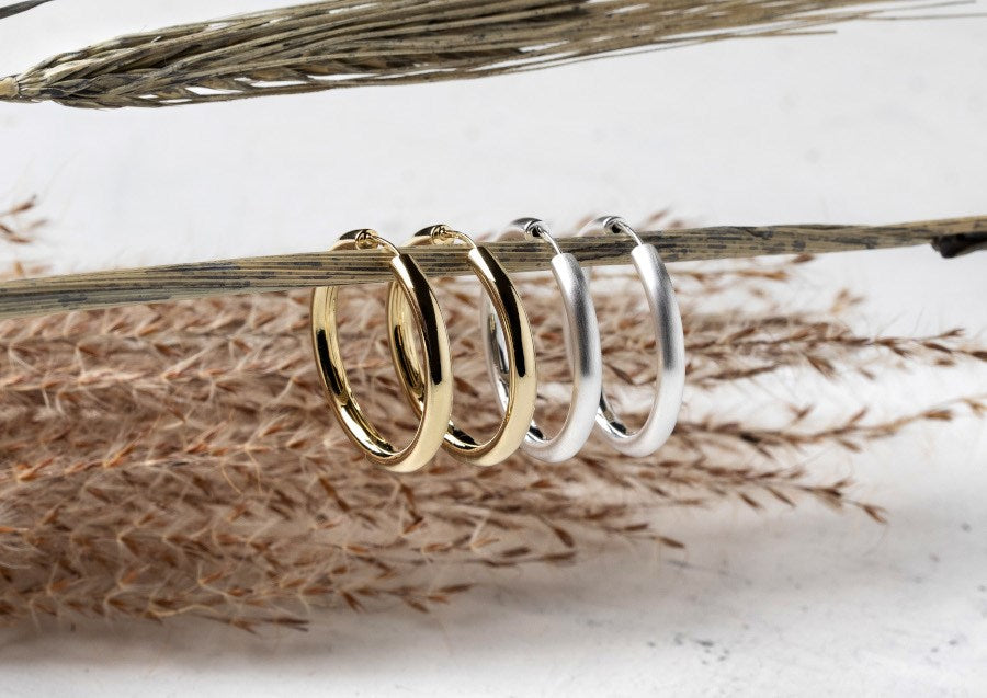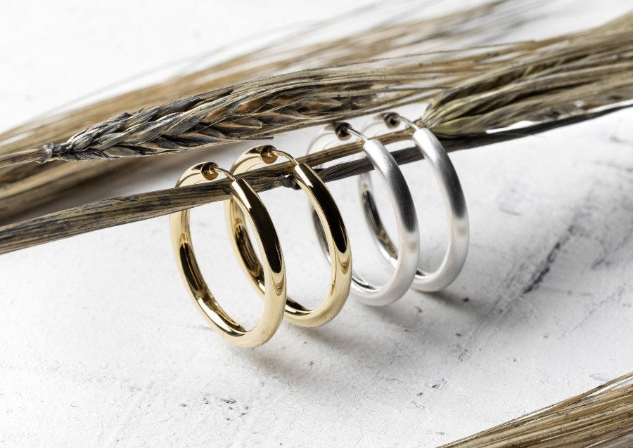 Hoop earrings are currently celebrating their mega comeback, but can also look back on a long history and tradition. They were once worn in the left ear by sailors and, provided with initials, were considered a kind of life insurance and means of identification. Nowadays, hoop earrings are a highly individual, trend-oriented accessory. Whether models made of yellow or rose gold-plated 925/- sterling silver or sporty-elegant ones made of pure 925/- sterling silver, hoop earrings are a current must-have and an indispensable part of the jewelry boxes of trend-oriented women. Scroll through the bastian inverun hoop earrings range and be inspired by the numerous models, sizes and variations. Whether matted, polished, brushed or as a combination - the current bastian inverun basics have something for everyone. Whether casual, feminine-elegant or business-like, discover the most beautiful trends for your ears, emphasize your individual look and combine as you please!