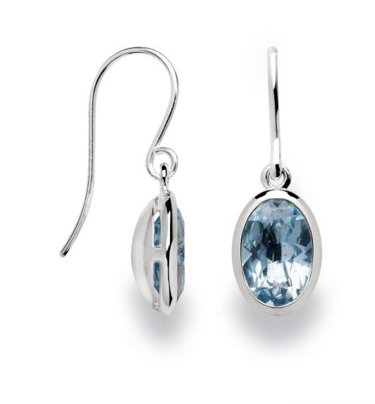 Modern and timeless at the same time: These "Coloured Confession" earrings made of polished 925 sterling silver impress with their high-quality workmanship and the excitingly faceted, oval-cut blue topazes (color "Sky Blue") with a total of 3.02ct. Available with matching ring and matching pendant.
