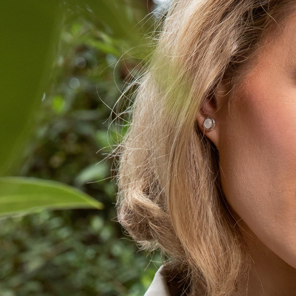Polished 925/- sterling silver meets a white moonstone with a total of 1.63ct. The feminine and at the same time modern design earrings impress with their valuable, solid workmanship, which are made to last forever. A striking, innovative jewelry design from the pen of designer Nadine Resch. Perfect in combination with the matching pendant and ring.