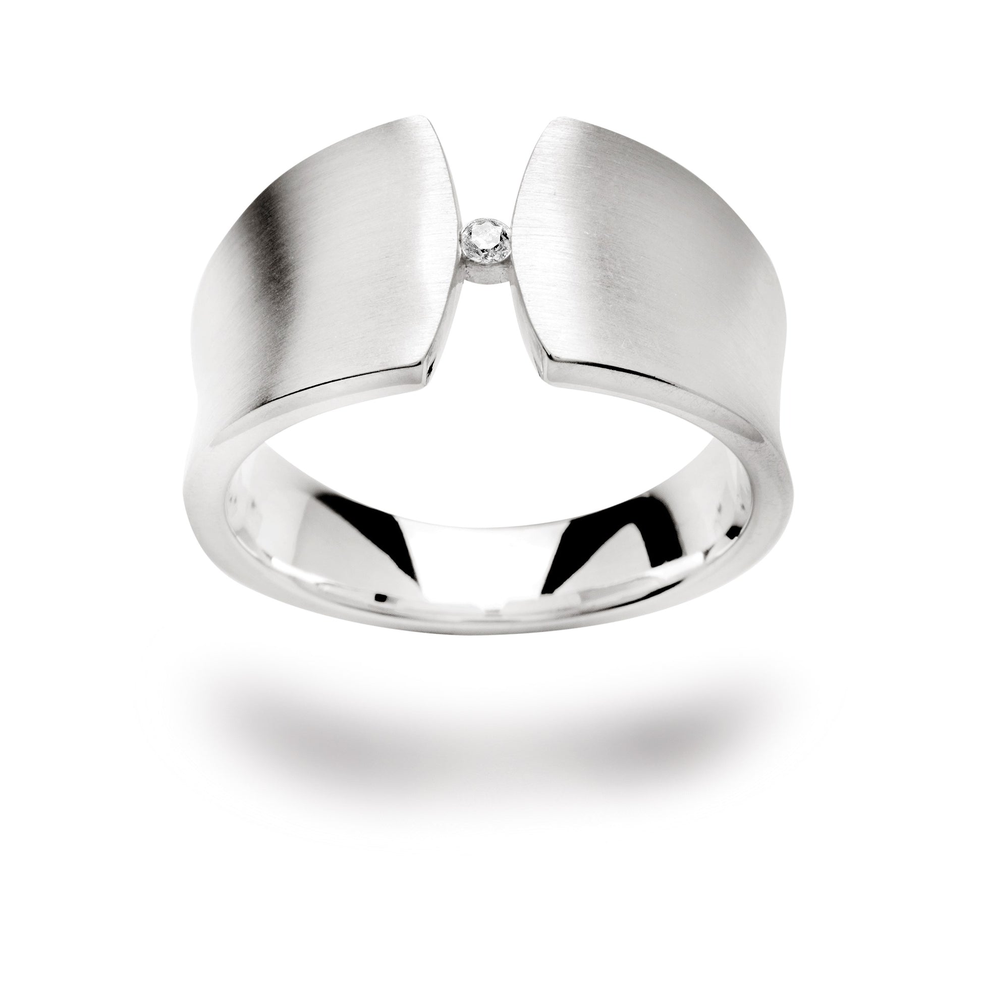 Magnificent highlight: This sparkling design ring (0.04ct, W-SI) impresses with a centrally positioned brilliant-cut diamond in a characteristically running ring band made of matt-finished 925 sterling silver. A timeless and high-quality eye-catcher - perfect as a gift or as a proposal ring.