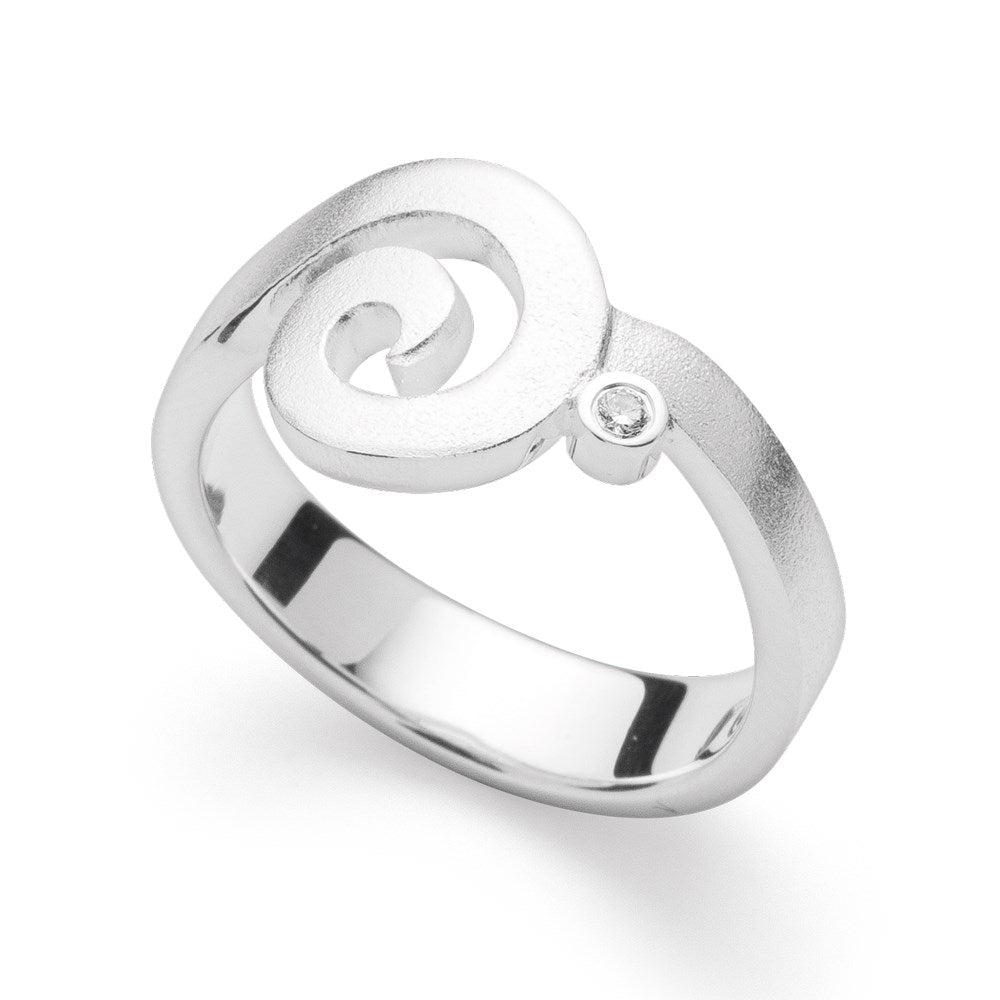 A sensual, feminine design made of sand-matted 925 sterling silver. This enchanting hand jewelry designed by Düsseldorf designer Nadine Resch impresses with a sparkling diamond weighing 0.02 ct and a unique shape. A valuable piece of jewelry with the makings of an absolute favorite piece of jewelry. Available with matching pendant and matching stud earrings.