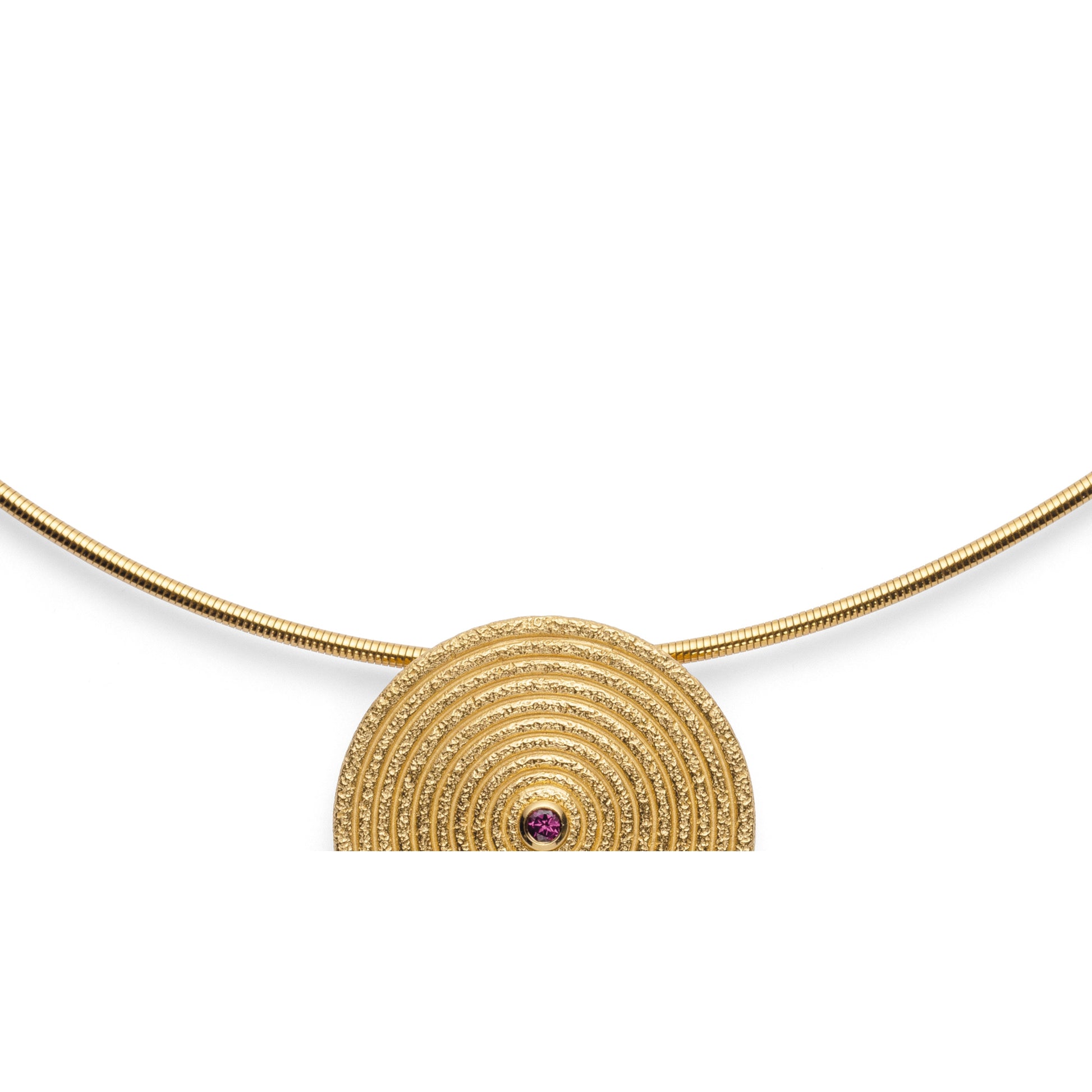 Gold-plated choker made of 925/- sterling silver with a stainless steel core and double clip fastener (pin fastener) with a thickness of 1.4mm. The practical new type of closure makes the hoop particularly easy to open and close. The hoop offers many possible combinations with filigree or larger pendants and is comfortable to wear. Also available in other designs.