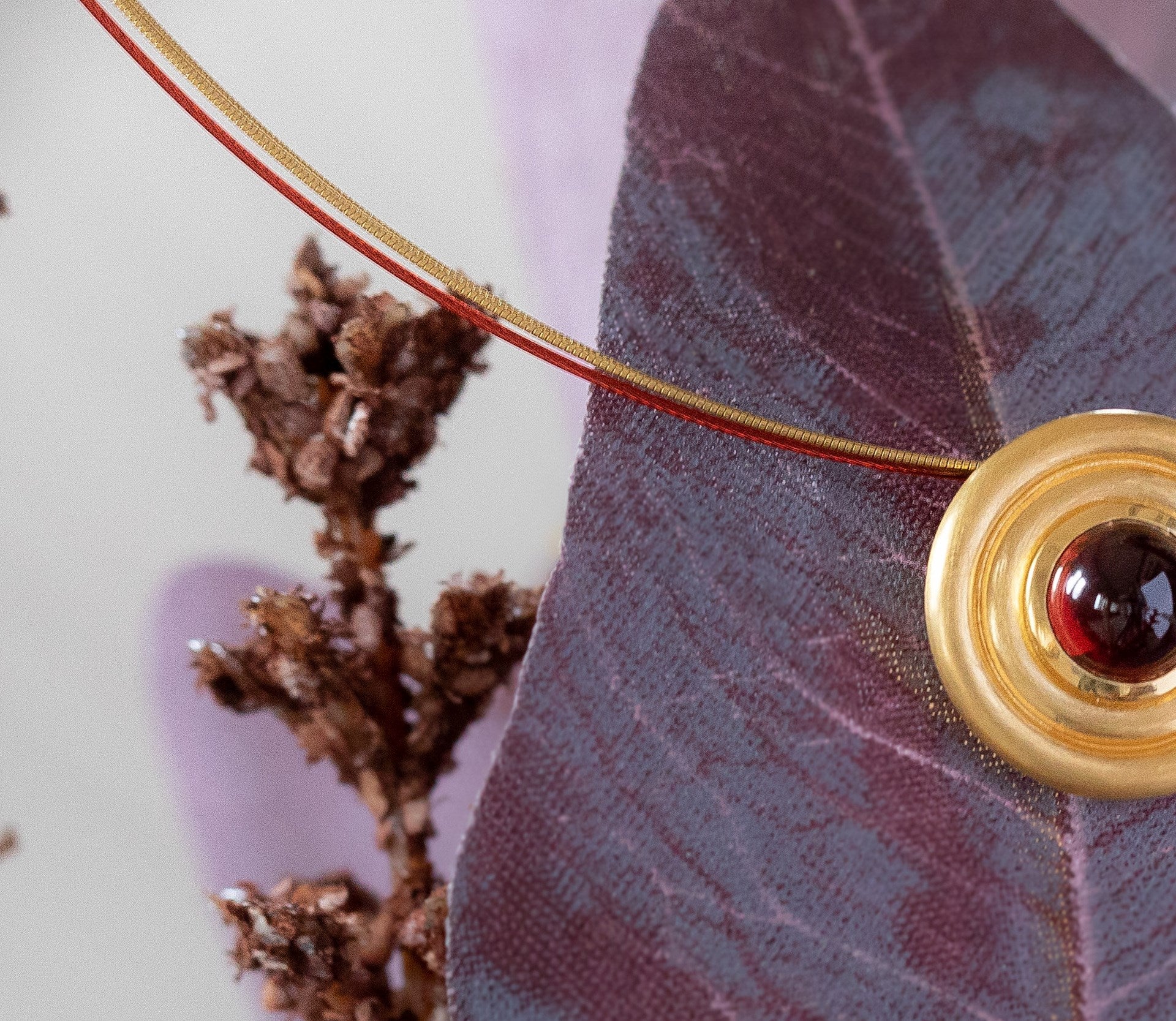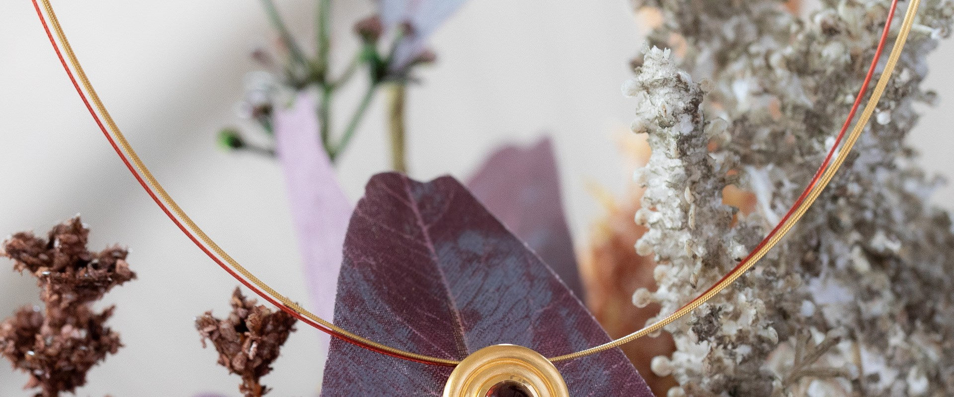 Elaborately crafted choker made of 3 fine, red and gold-plated stainless steel strands, which are harmoniously brought together in a double clip closure. The new, practical closure type makes it particularly easy to open and close. Also available in other designs.