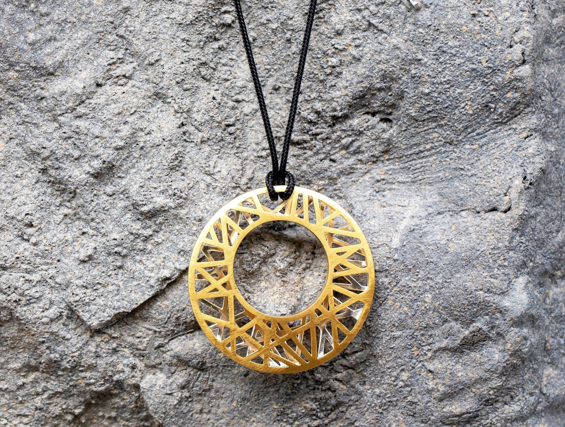 Bird Nest' - a perfect expression of stylish jewelry art. Delicate, straight branches, framed in a circle, combine to create unique jewelry statements. As a sparkling homage to the last 50 years, we have recreated a tried and tested, yet unique design that will be remembered. Based on the structure of a bird's nest and inspired by the basic idea of an origin story, the pieces of jewelry made of radiant and gold-plated 925/- sterling silver skillfully impress with their cleverly designed design language. The result is a necklace, a pendant and earrings, which become masterpieces of jewelry art thanks to their bicolor appearance.