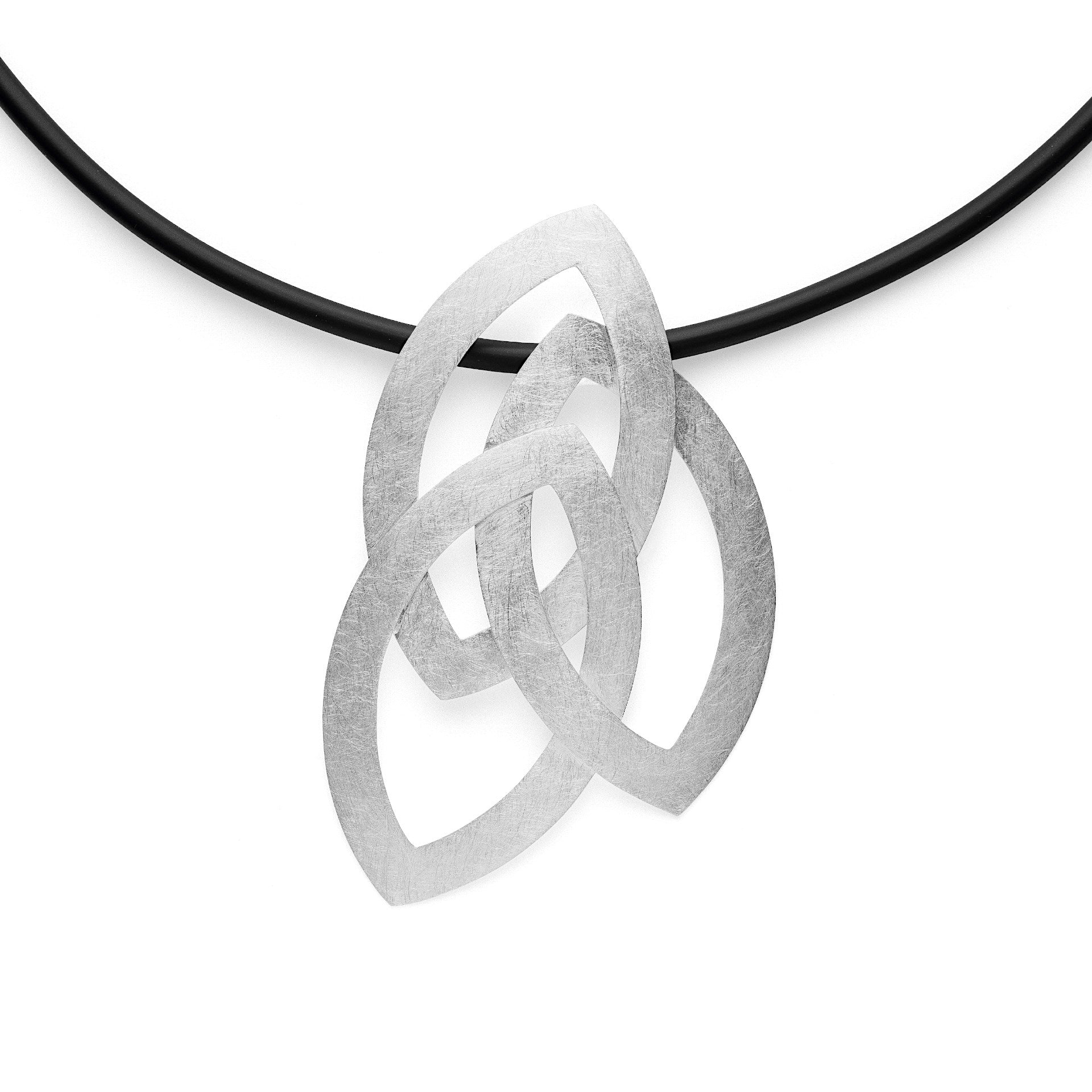 "Magic Leaves Collection" - a floral-inspired design pendant made of 925 sterling silver meets a scratch-matt surface finish with perfect craftsmanship. The opulent pendant, designed by the designer Dr. Designed by Sabine Brandenburg-Frank, it impresses with its cut-out details and high-quality workmanship in manufacturing quality. Perfect in combination with the matching ear studs and the matching ring.