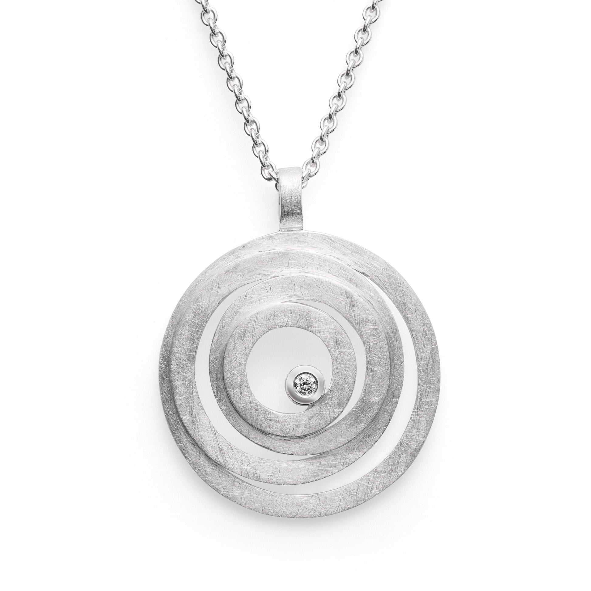 Sparkling delights: A unique spiral design meets a centrally arranged, sparkling brilliant cut diamond with 0.02ct (W-SI). This piece of designer jewelry, handcrafted from scratch-matted 925 sterling silver, is a timelessly elegant all-rounder that you will enjoy for a lifetime. Available in a set with matching ear studs and matching ring.