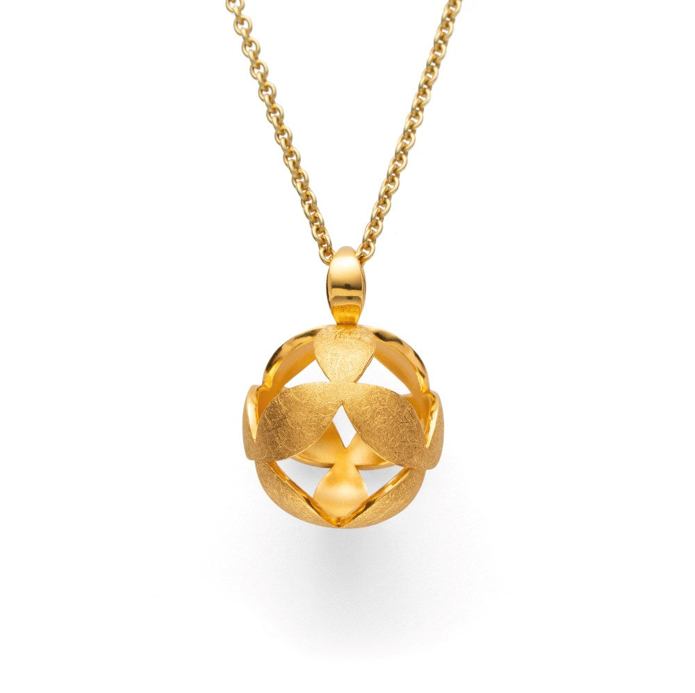 A floral-inspired design pendant made of gold-plated 925 sterling silver impresses with a hand-finished, scratch-matt and polished surface structure. The sophisticated and at the same time round shape ensures a unique appearance of the magical pendant. Perfect in combination with the matching earrings.