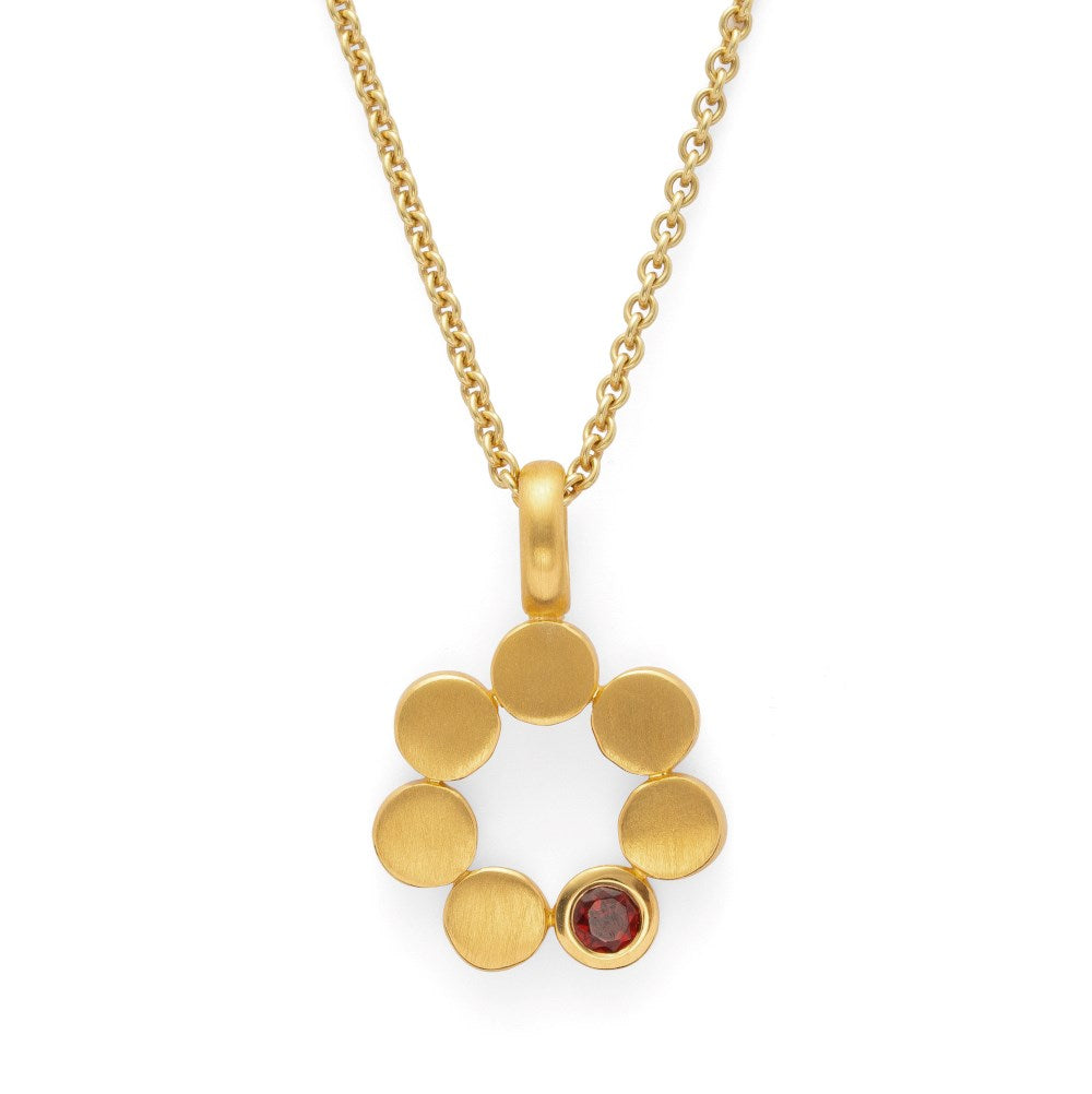 Red Light Collection' - rows of circular decorative elements made of gold-plated 925/- sterling silver create this modern pendant, which is crowned with a radiant garnet (design by Nadine Resch). Perfect in addition to the matching stud earrings and matching ring.