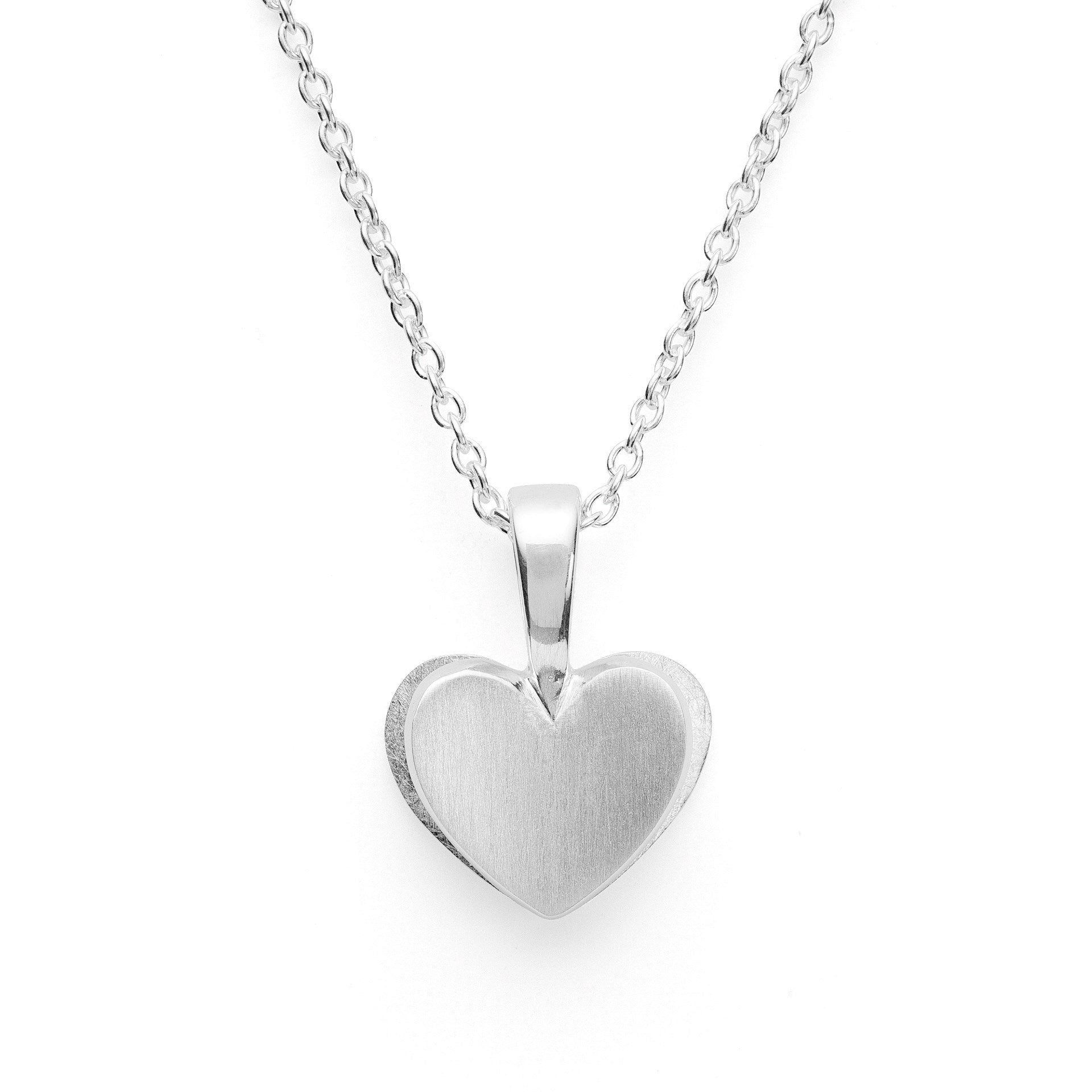A polished pendant made of 925 sterling silver with a matt finish on the front impresses with its cute and elegant design. The heart pendant fanned out on the side can be given as a particularly symbolic gift for a birthday, Christmas or a very special occasion. The design pendant is also a perfect jewelry companion for everyday life. A magical piece of jewelry from the pen of the Düsseldorf designer Nadine Resch.