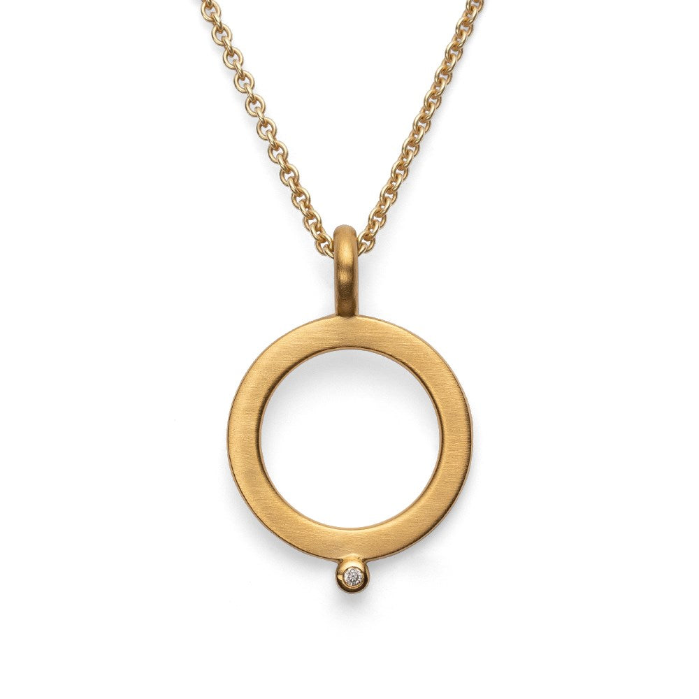 Brilliant Drop - a brand new, geometrically inspired design line from the pen of designer Antje Liebscher. Matted, gold-plated 925/- sterling silver is crowned with a sparkling and brilliant-cut diamond weighing 0.01 ct (W-SI). Perfect in combination with matching ear studs and matching bracelet. This piece of jewelry is also available in pure silver.