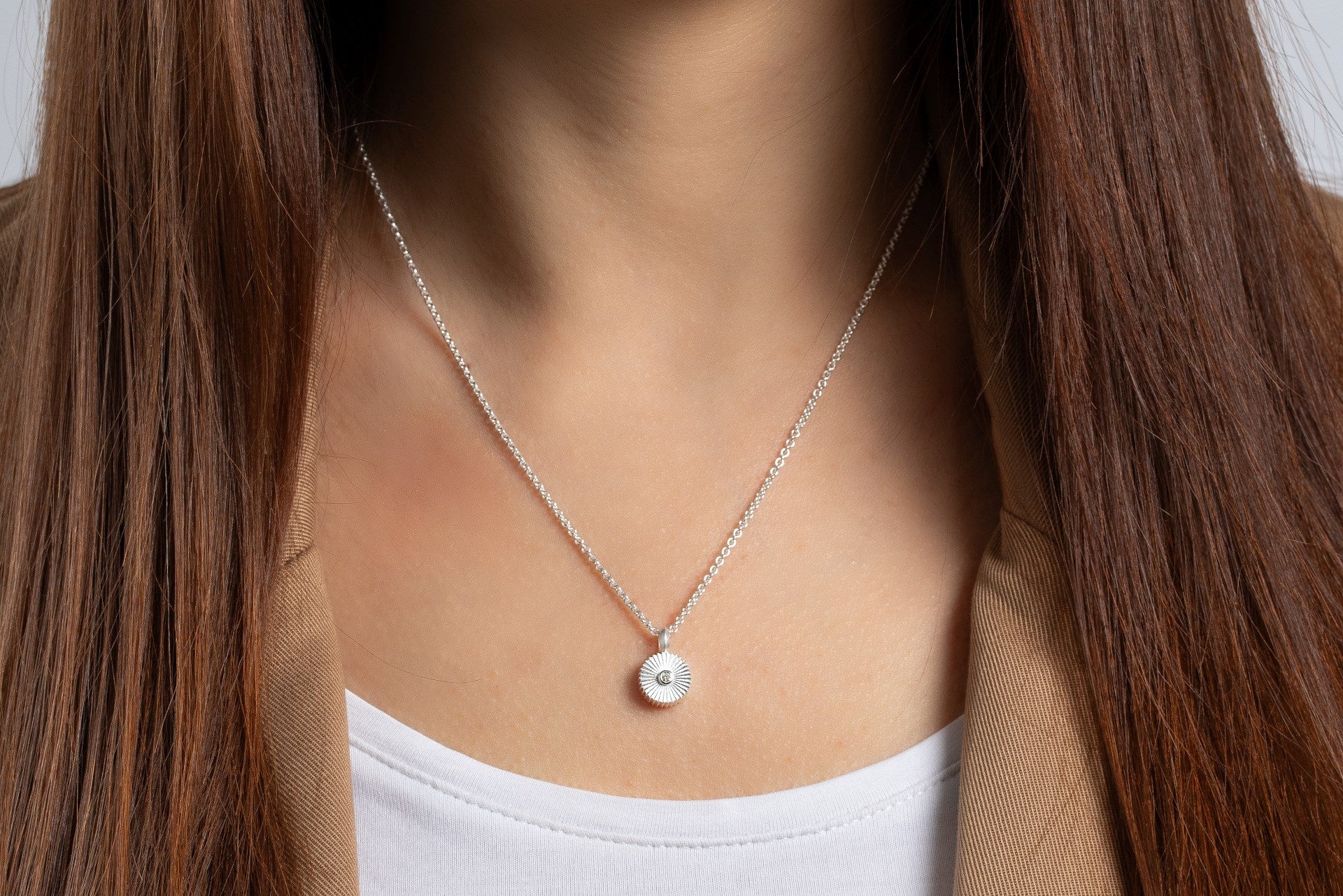 A consistently characteristic surface structure meets a sparkling and centrally positioned brilliant-cut diamond (0.02ct). Inspired by a goldsmith's tool, the designer Thomas Mayer enchants with his own signature. A valuable piece of jewelry with the makings of an absolute favorite piece of jewelry. Available with matching ear studs.