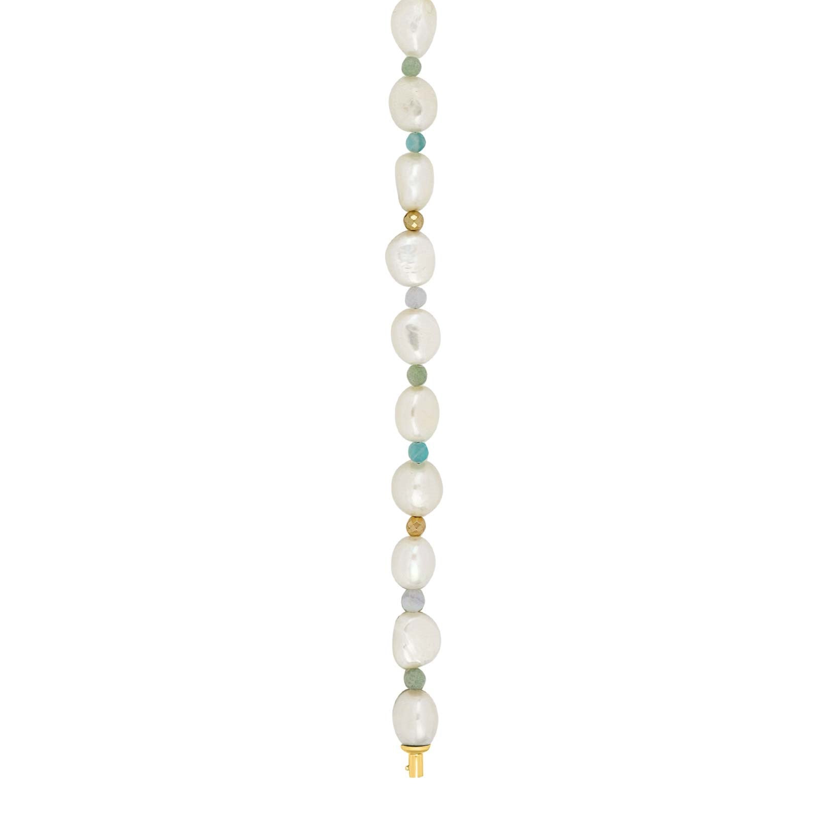 Natural baroque pearl, green aventurine, amazonite, chalcedony, plated hematite