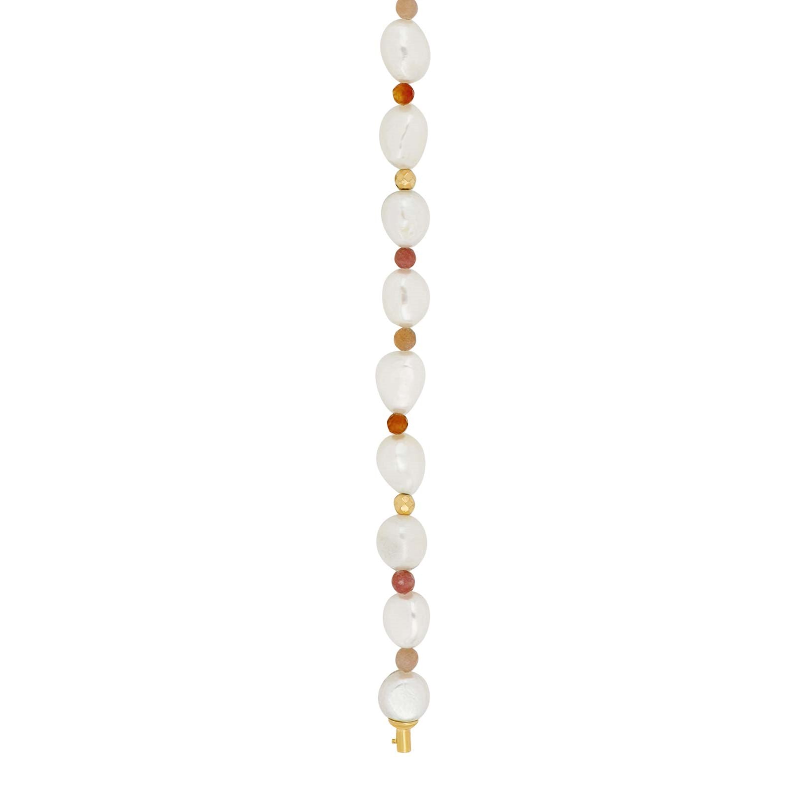 natural baroque pearl, carnelian, plated hematite, rhodocrosite, moon stone