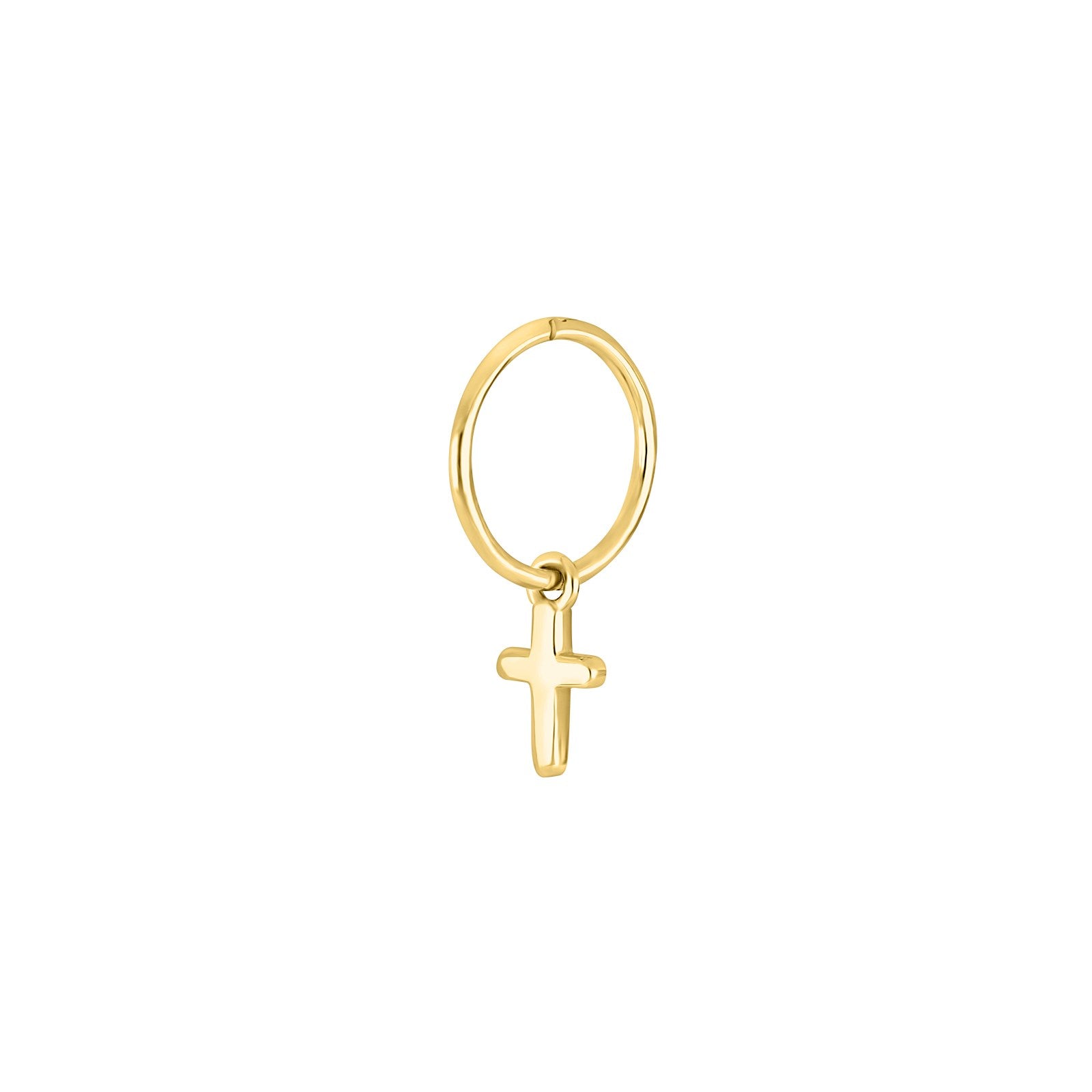 A really popular hoop with a cross pendant that adds style and coolness to your look. The cross is not just a symbol of Christianity, but also a symbol of humanity. Combine the hoop with the cross-ear stud from the same series for a cohesive look, or spice it up with some colour and more edgy jewellery and achieve a modern look.