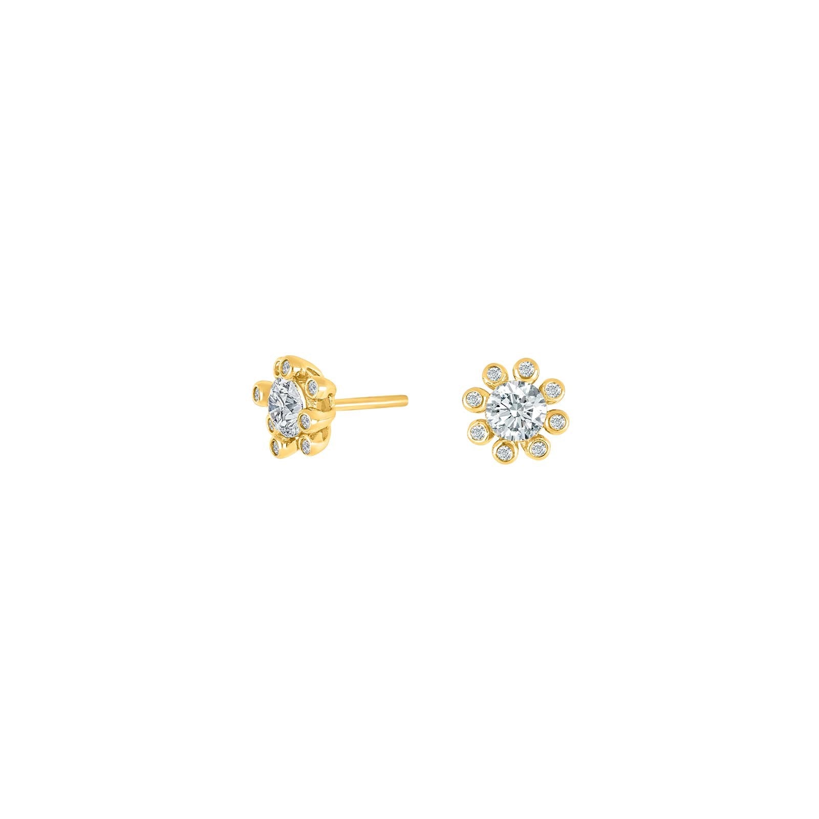 Elegant and timeless earrings that have gathered inspiration from nature. The earrings have a big cubic zirconia in the middle, and surrounding it are eight small, staggered stones. Together the shining stones form the finest flower motif.