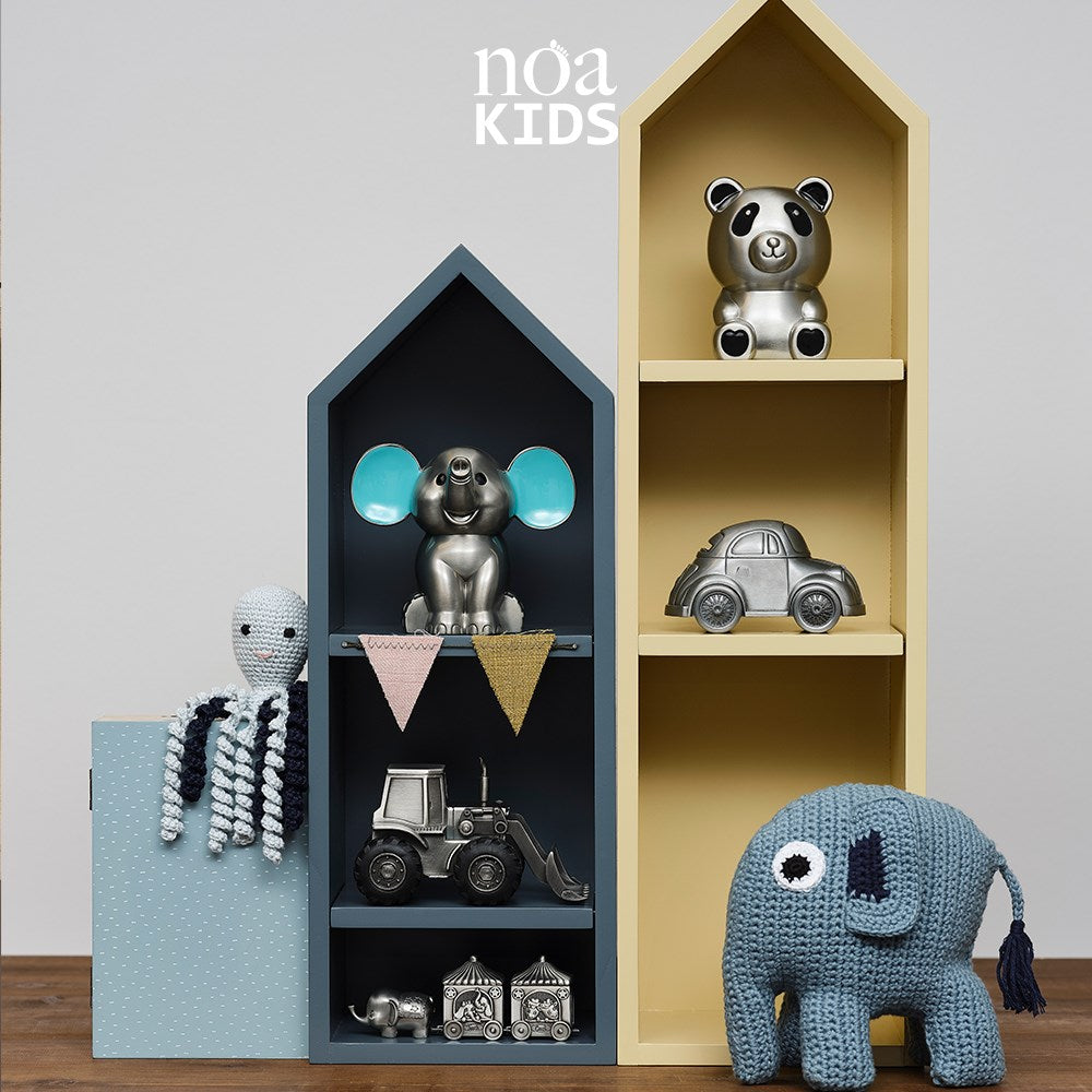 A really elegant and sweet tinned piggy bank, shaped like an elephant, with fine light blue details at the elephant's ears, which gives the piggy bank an extra touch. Regardless of whether you are looking for a christening gift for the little boy or girl, one of the popular choices is without a doubt a piggy bank, which always makes a happy addition to the christening gift table. It is a very traditional gift, and at the same time the obvious place to store monetary gifts. The piggy bank will decorate the children's room, and is a fun and educational way for the child to save money together. Already while the child is very small, the child becomes aware of what a savings actually is, and he gets the opportunity to see and feel the money physically between his little hands. A small rule to remember is that you must always put a few small coins in the piggy bank before giving the gift, because it is believed to bring good luck.