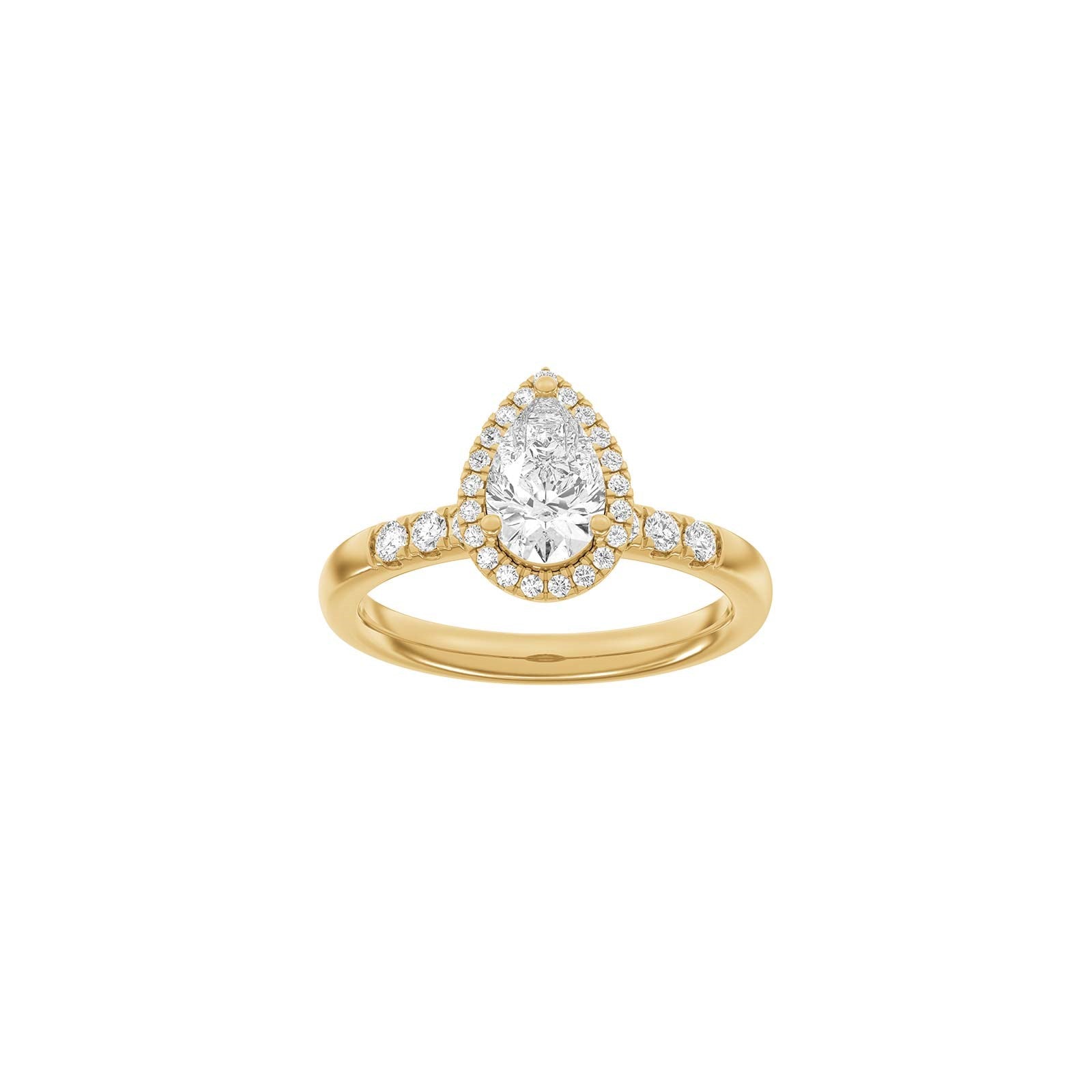 LUXURY Halo drop 14kt. gold ring w. Lab. G. dia. 1.32ct TW/VS2