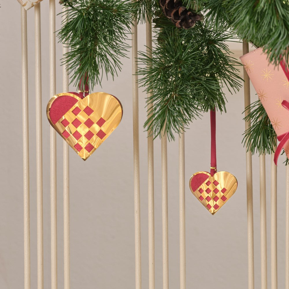 This gold plated Christmas heart in miniature edition from Nordahl Andersen is 5 cm tall and supplied with a red felt liner and a red band.