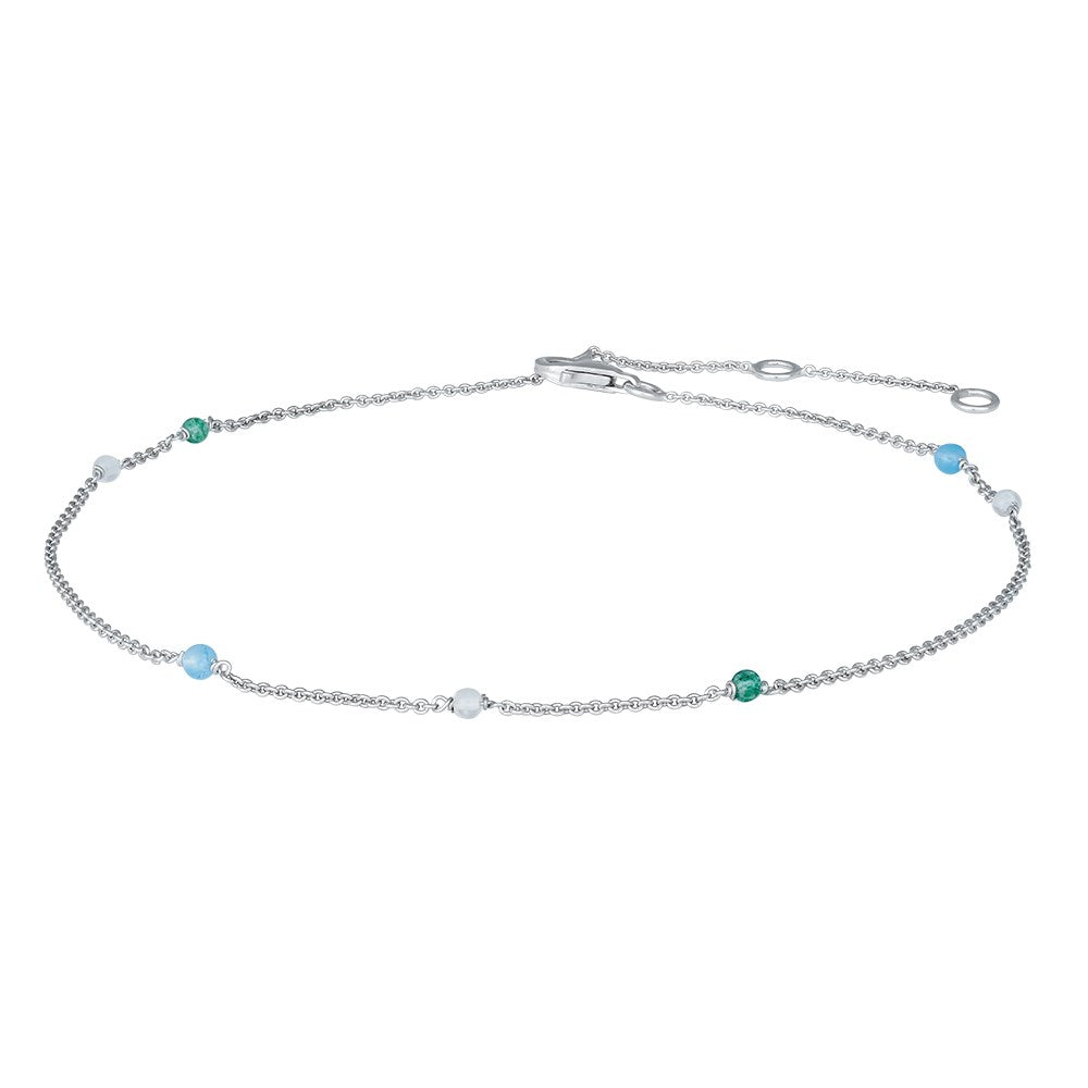 Pop on some colour with our SWEETS52. The anklet is adorned with small beats of rose quarts, aventurin and chalcedon.