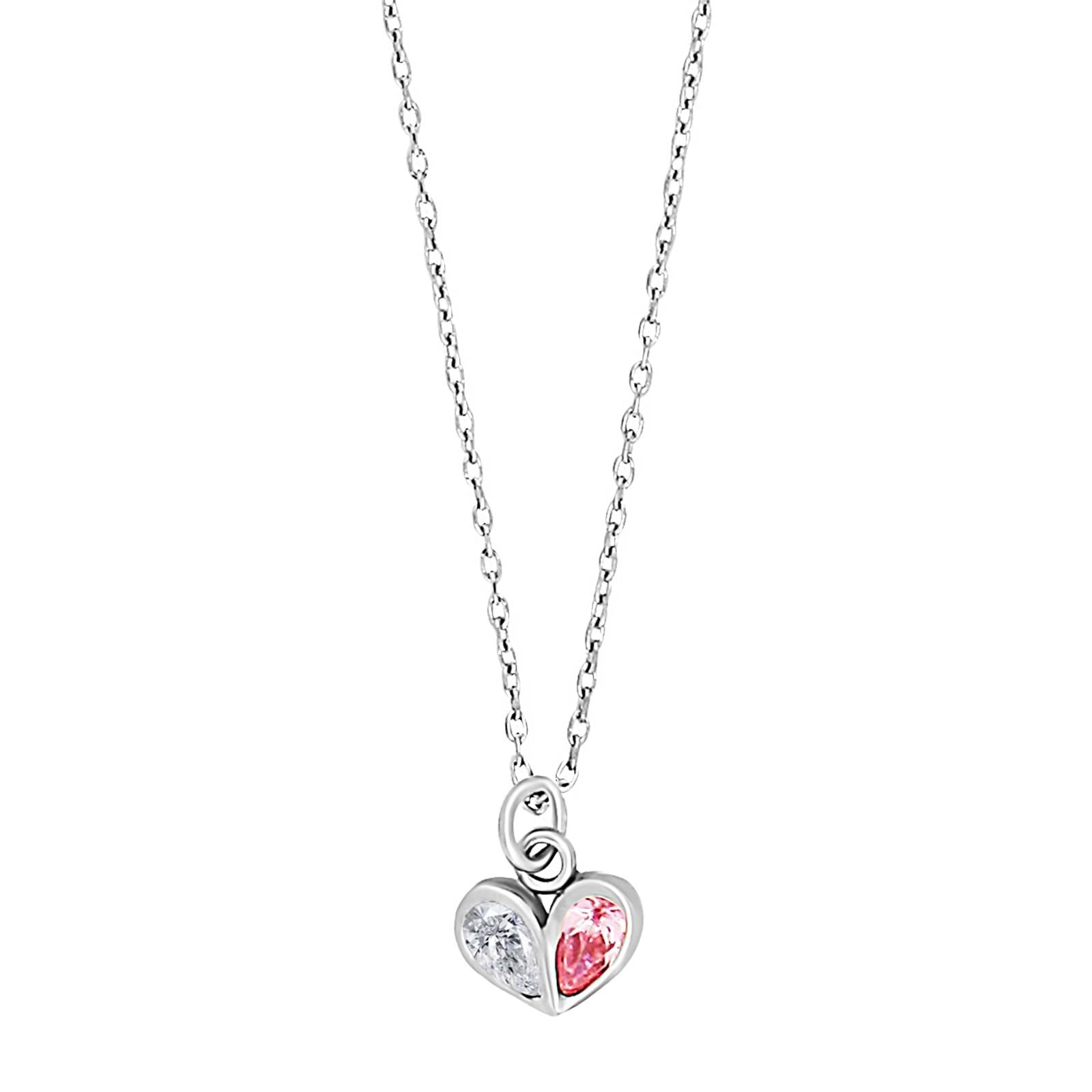 Rhd. silver necklace heart w. white-pink cz