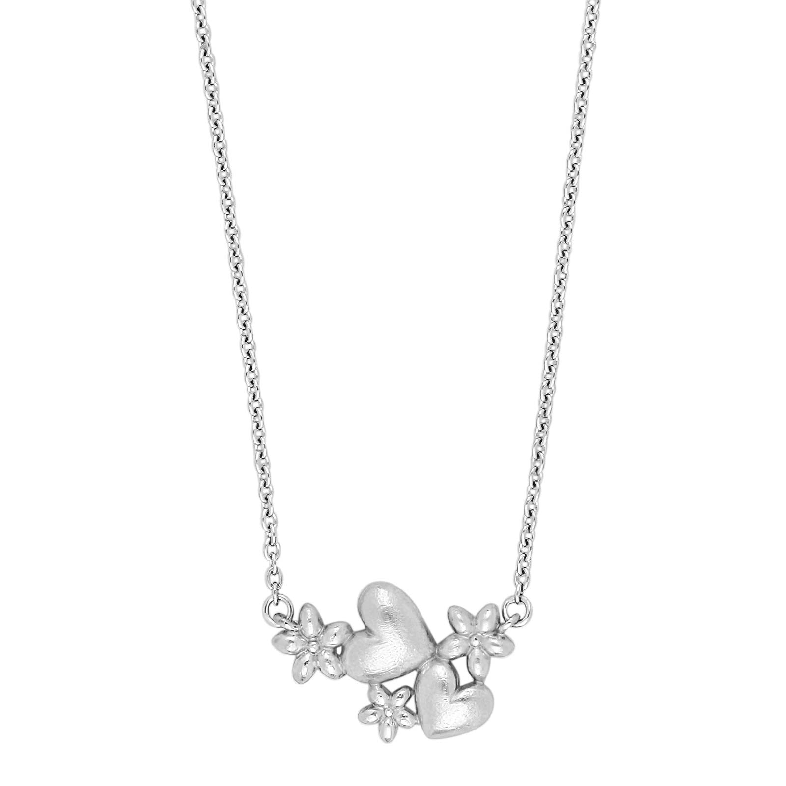 Rhod. silver necklace hearts and flowers