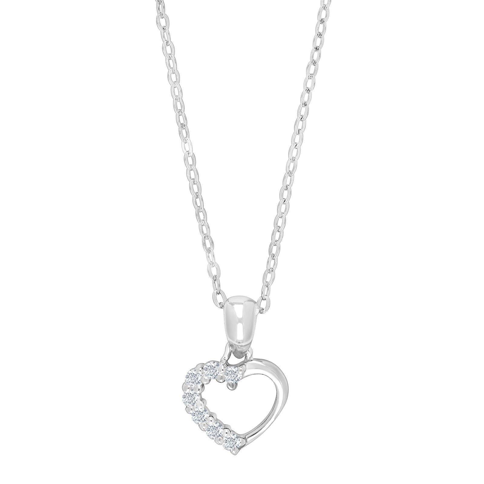 Rhod. silver pendant heart w/cz incl. chain