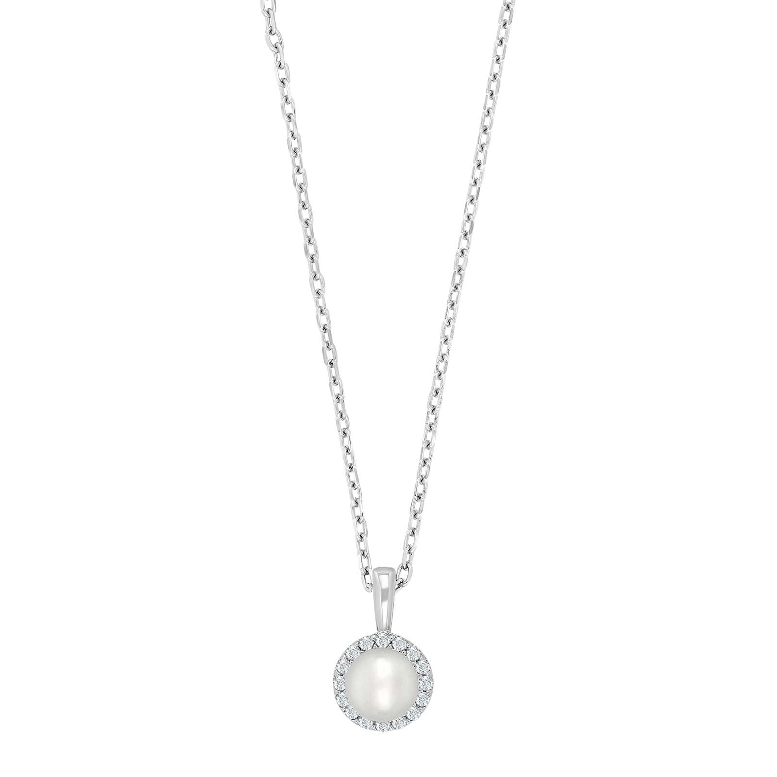 Rhod. silver necklace w/pearl + cz