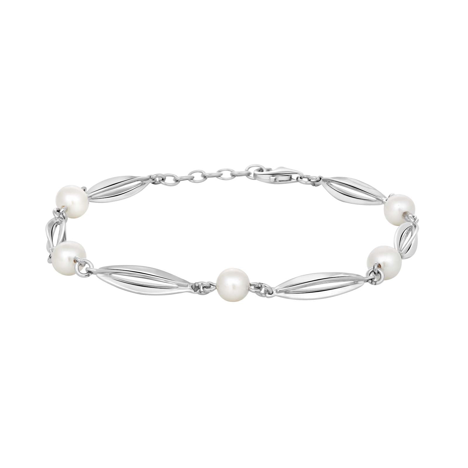 Siersbøl silver rhod. bracelet pearl (FWP) 18+2cm