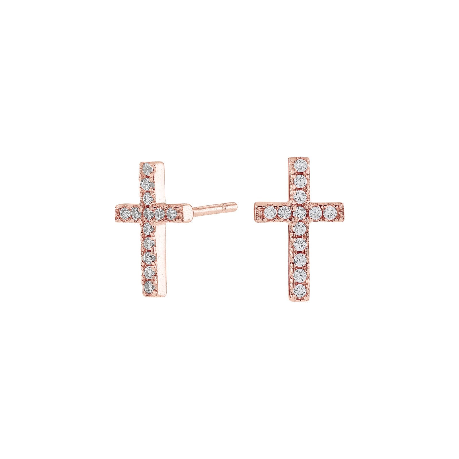 cross ear studs with a twist of extravagance in rhodium-plated silver.