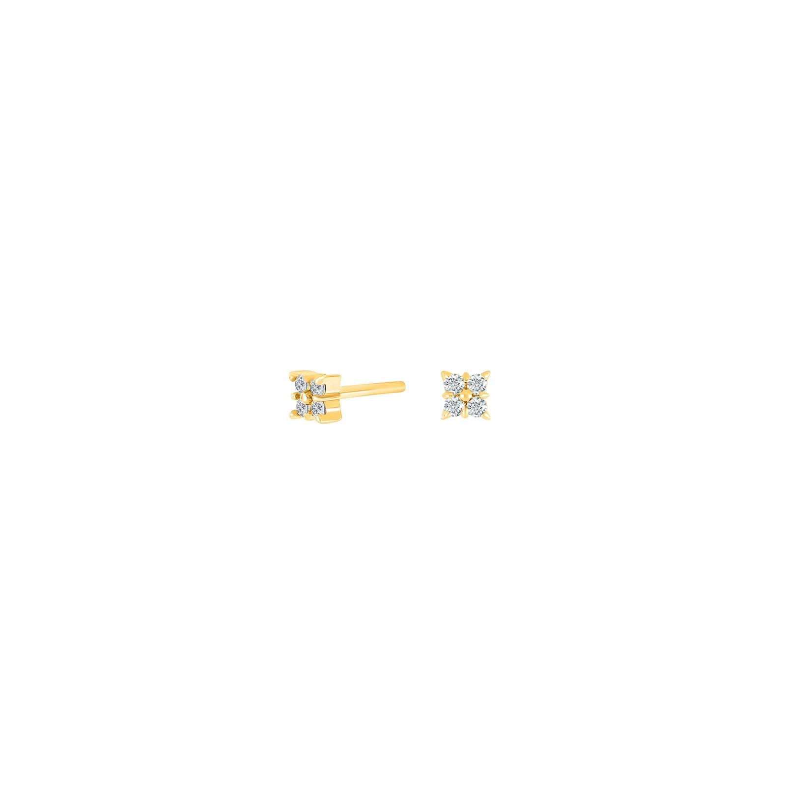 Small, detailed ear studs with four cubic zirconia in prong setting that form a square.