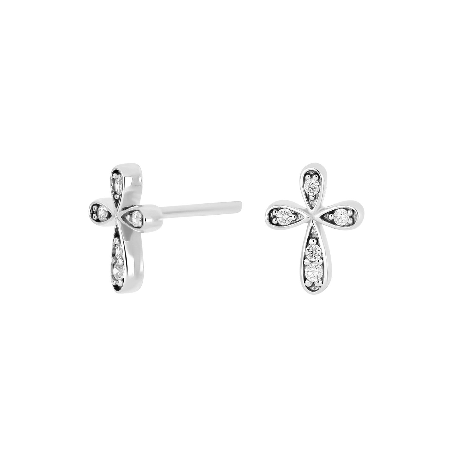 rhodium-plated silver are shaped in a cross and decorated with fine, sparkling
