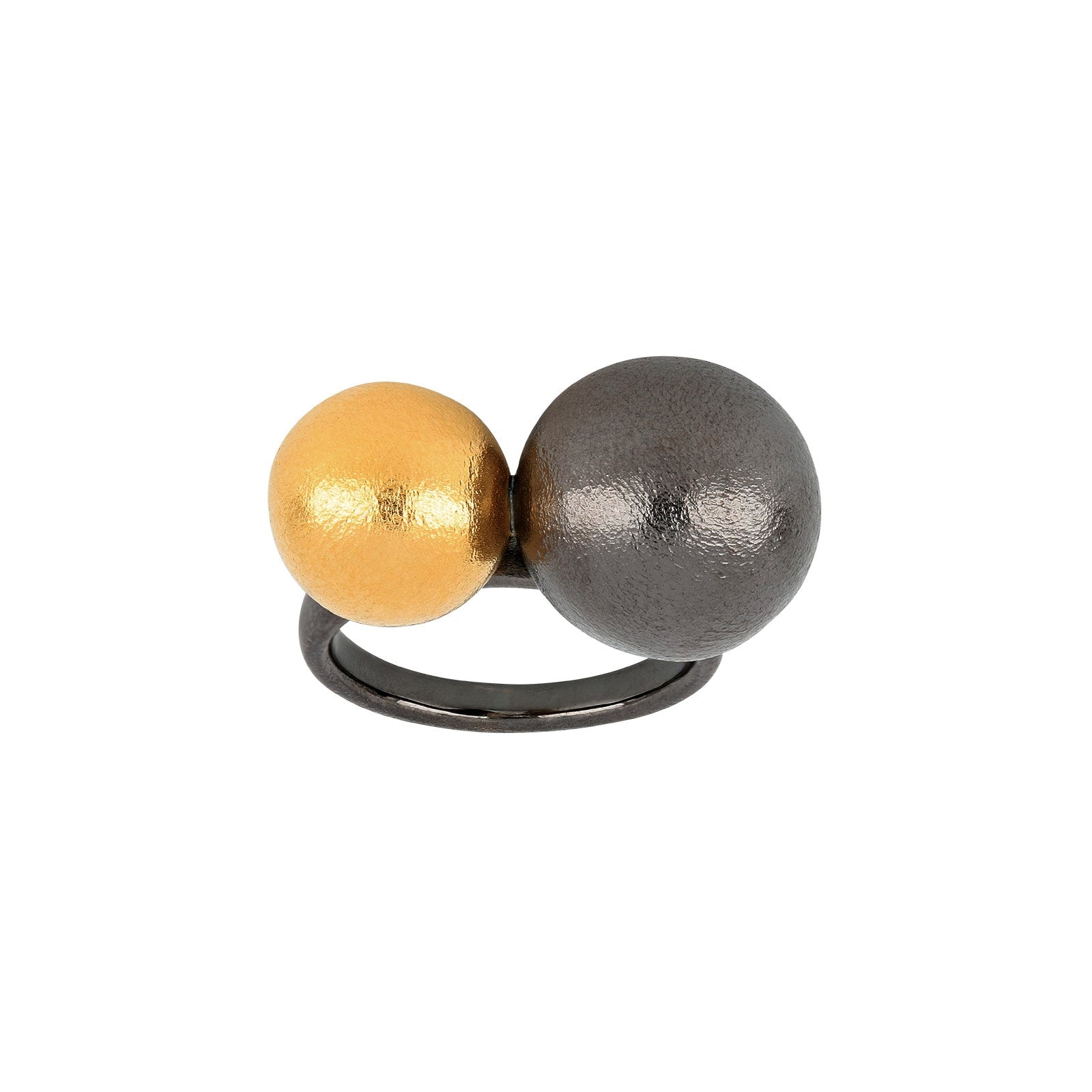 Silver Black rhod. + gold-plated ball ring
